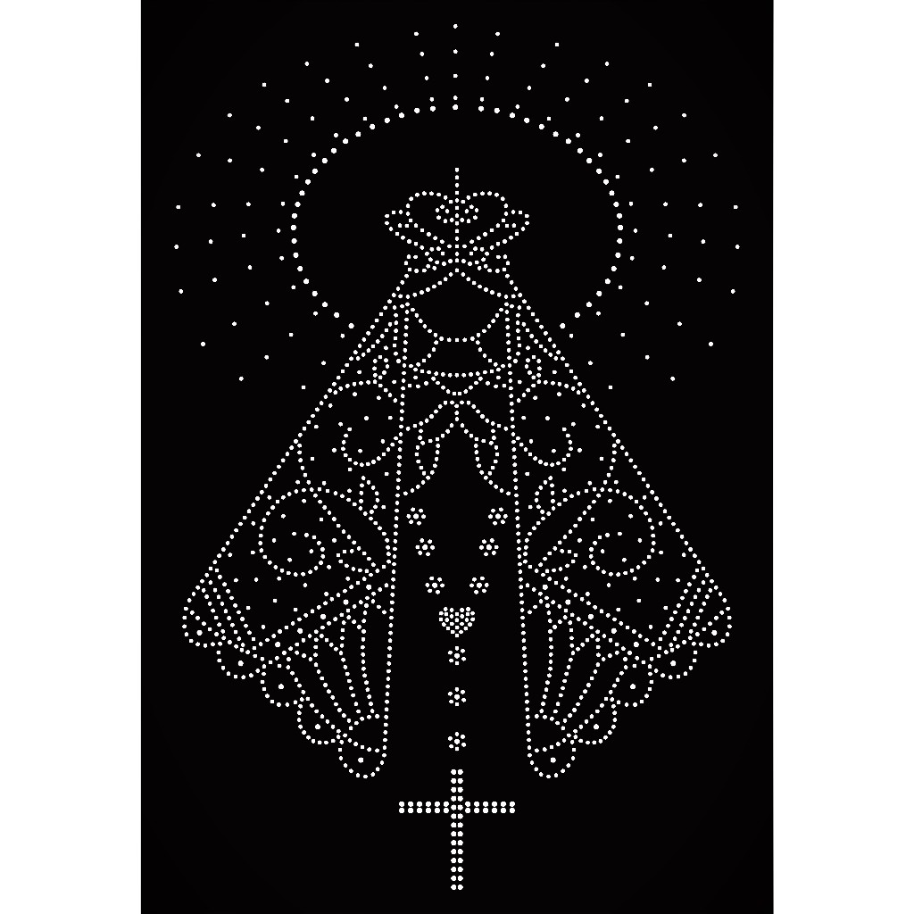 Aplique Strass Nossa Senhora para Véu de Noiva termocolante.