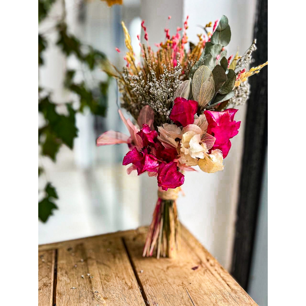 Arranjo/buquê flores e folhagens naturais desidratadas bougainvillea opções tamanho P e M