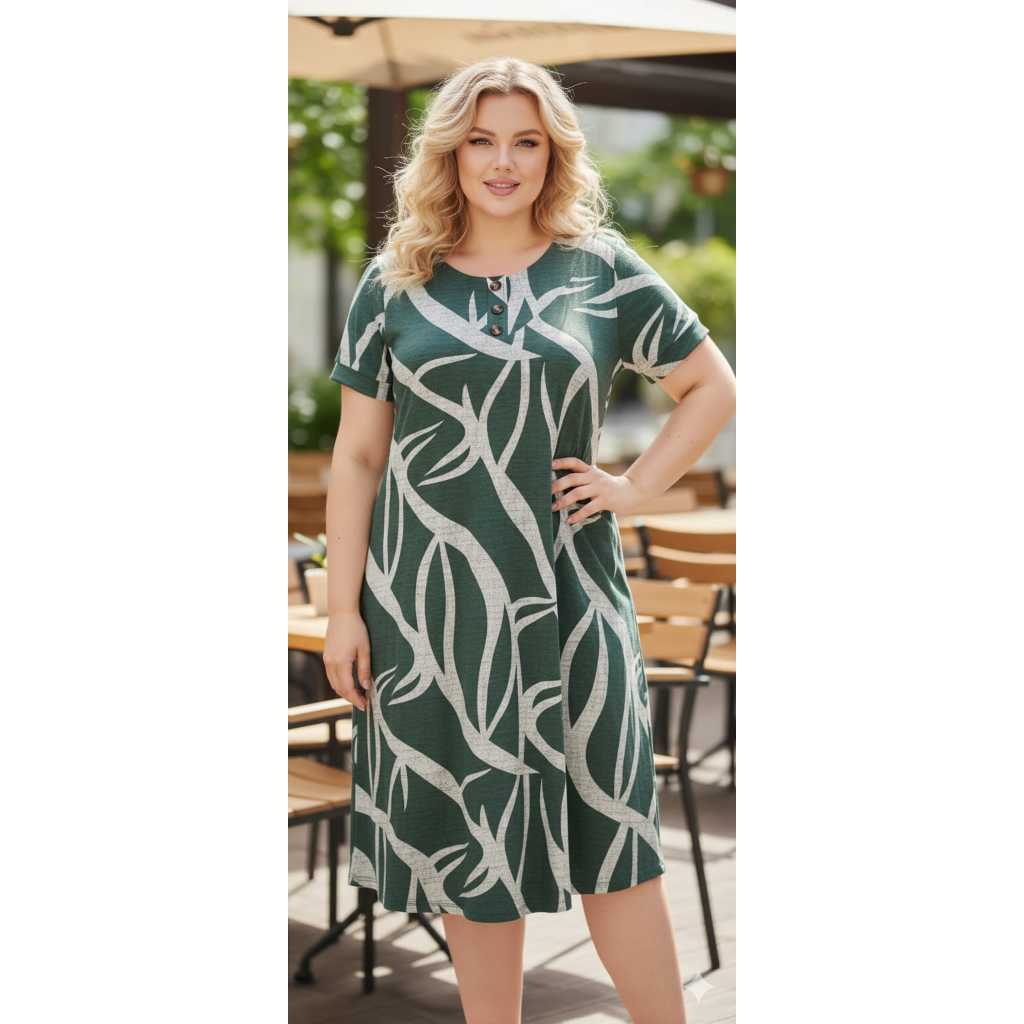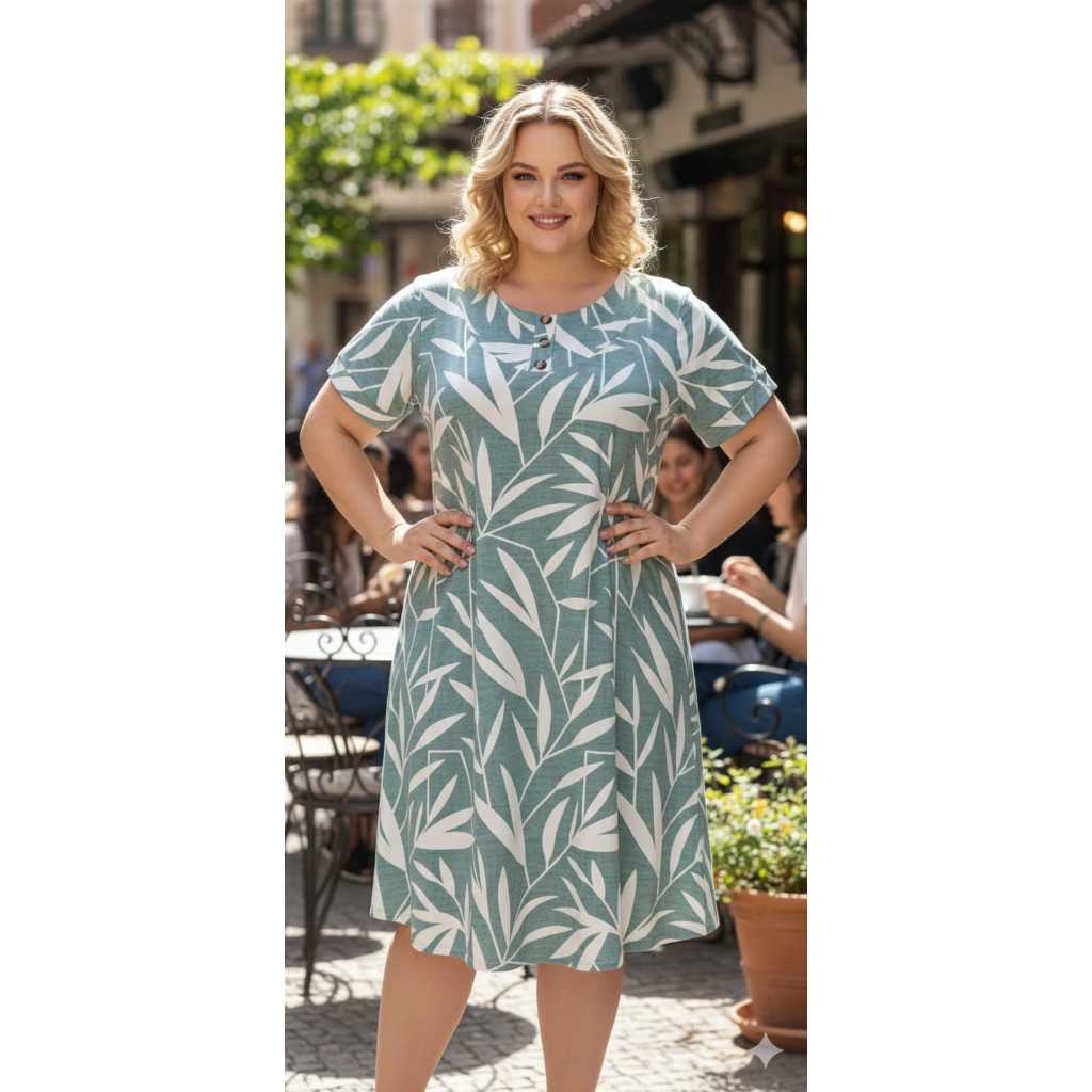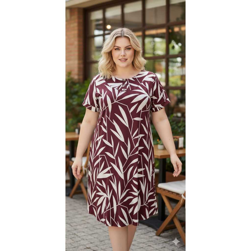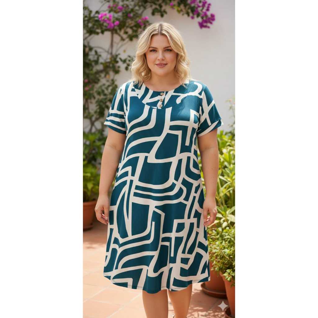 VESTIDO FEMENINO TRÊS BOTÕES, COM MANGA CURTA PLUS SIZE , MALHA VISCOLAYCRA PREMIUM GG.