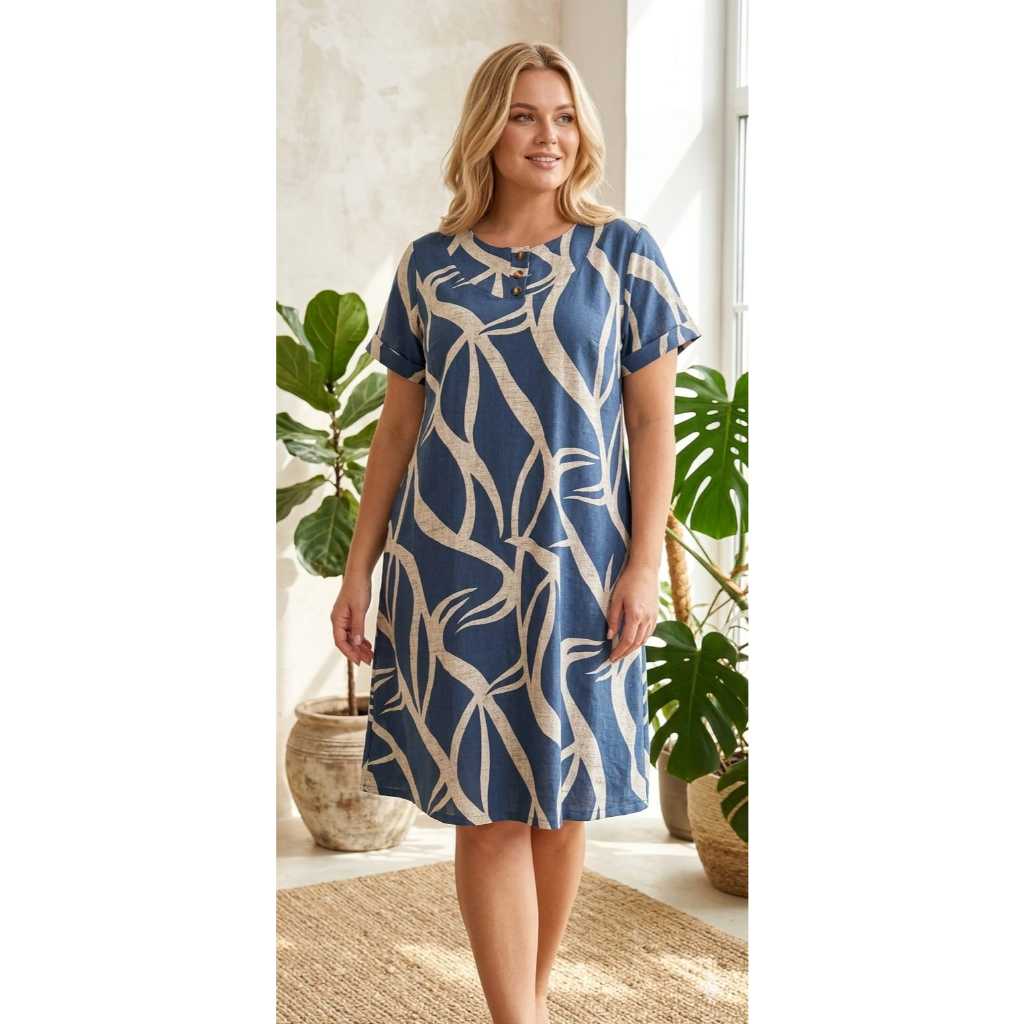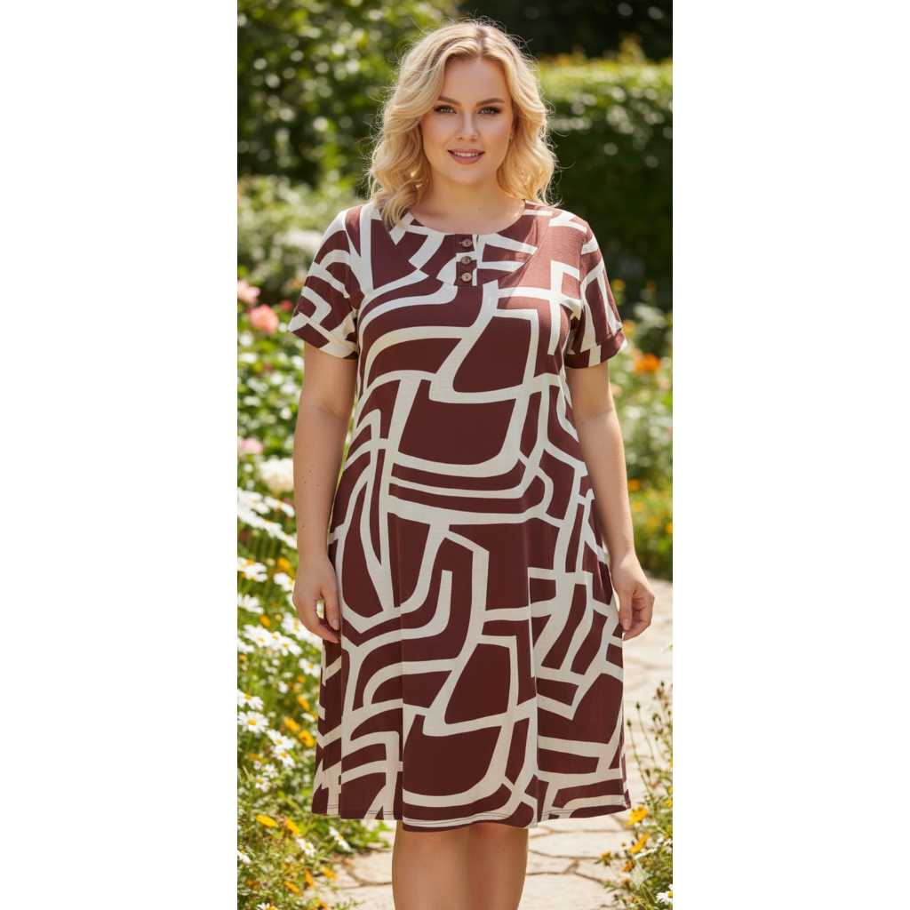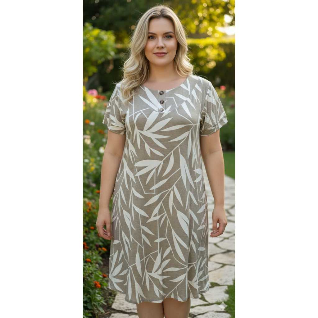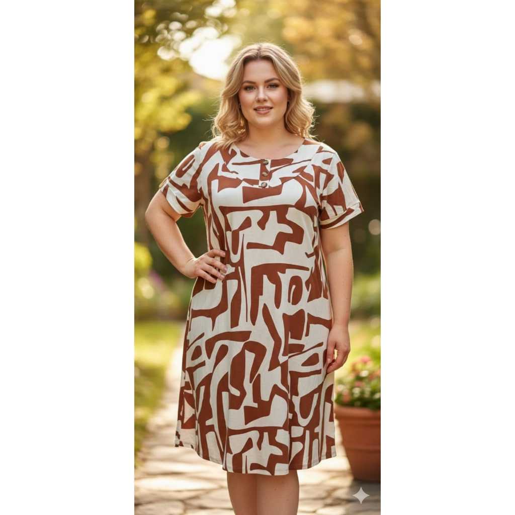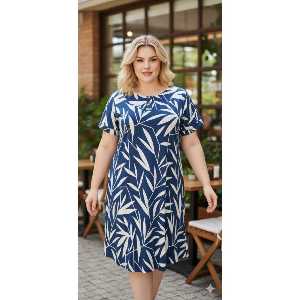 VESTIDO FEMENINO TRÊS BOTÕES, COM MANGA CURTA PLUS SIZE , MALHA VISCOLAYCRA PREMIUM GG.