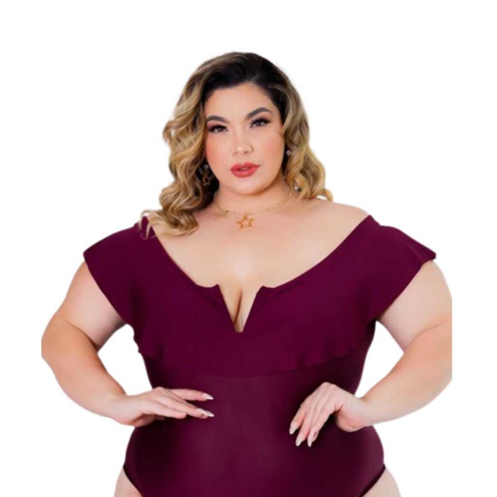 Blusa Body Body Maio Babado Em V Ombro a Ombro Plus Size Varias Cores Bloguerinha