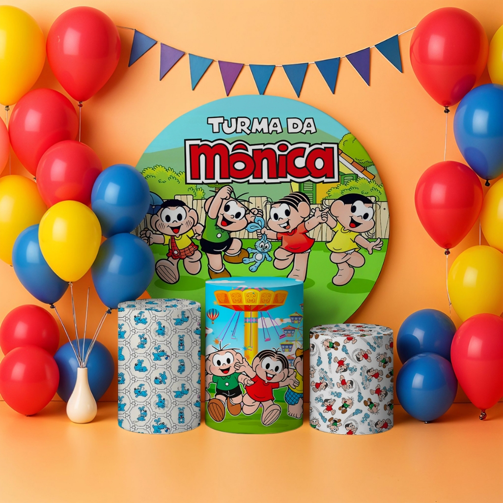 Capas Painel Redondo Cilindros Decoração Turma Mônica