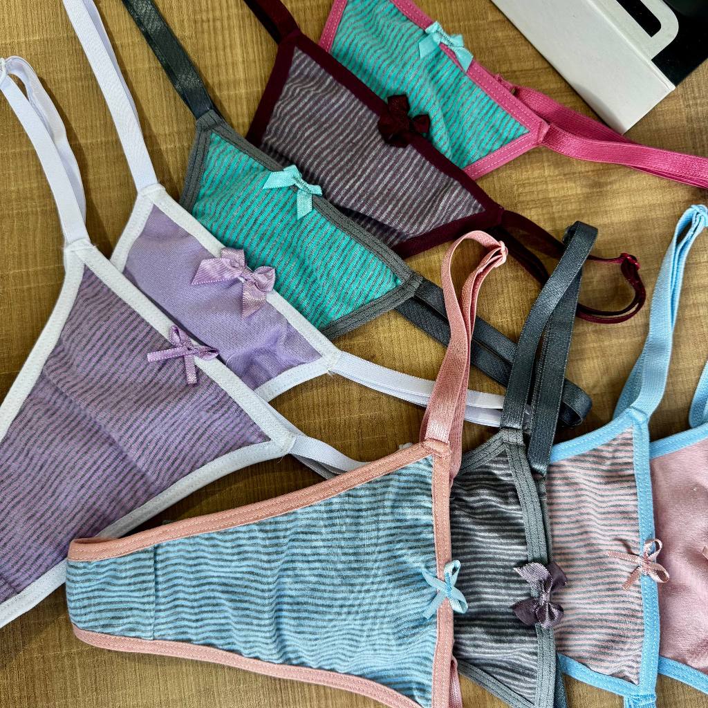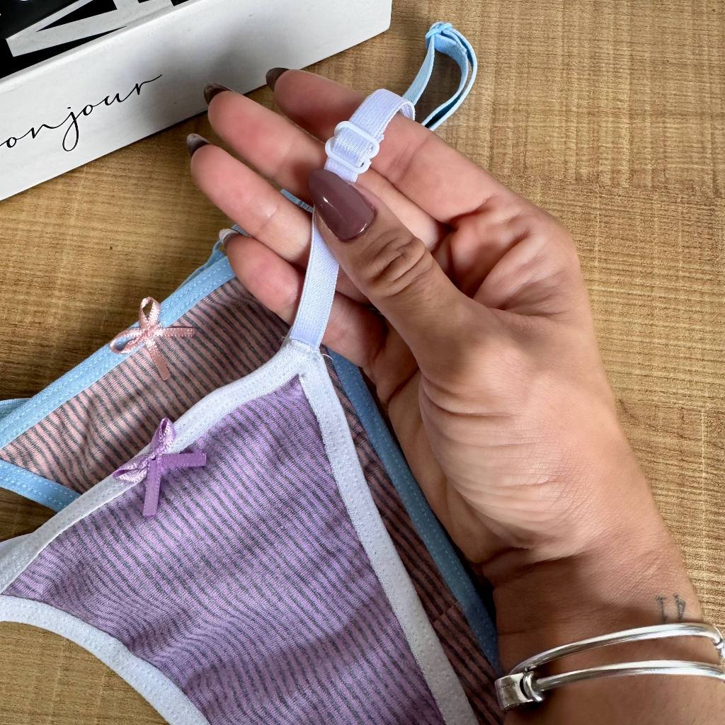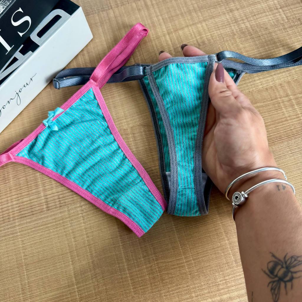 Kit com 5 Calcinha Tanga Algodão com Alça de Regulagem Moda Intima