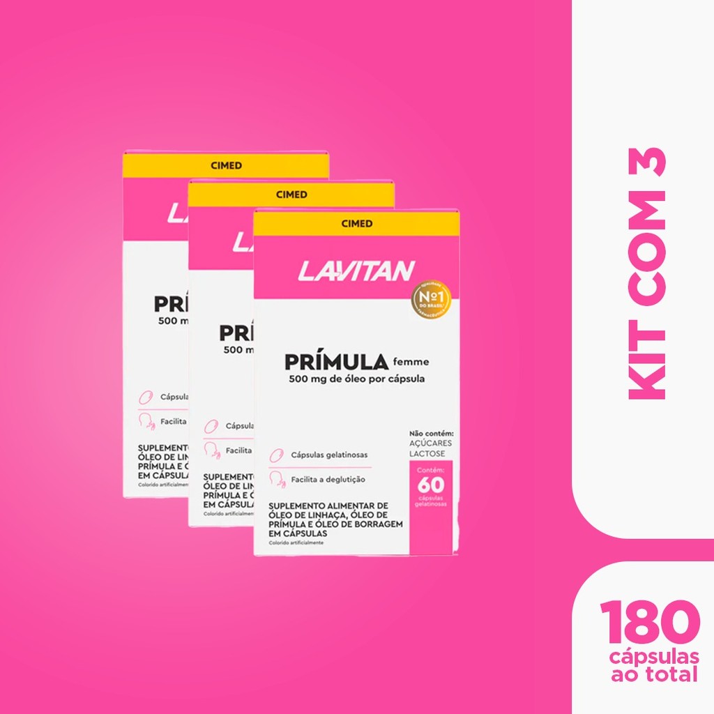 Kit 3 Lavitan Prímula Femme 500mg - 60 Caps - Cimed