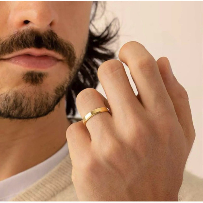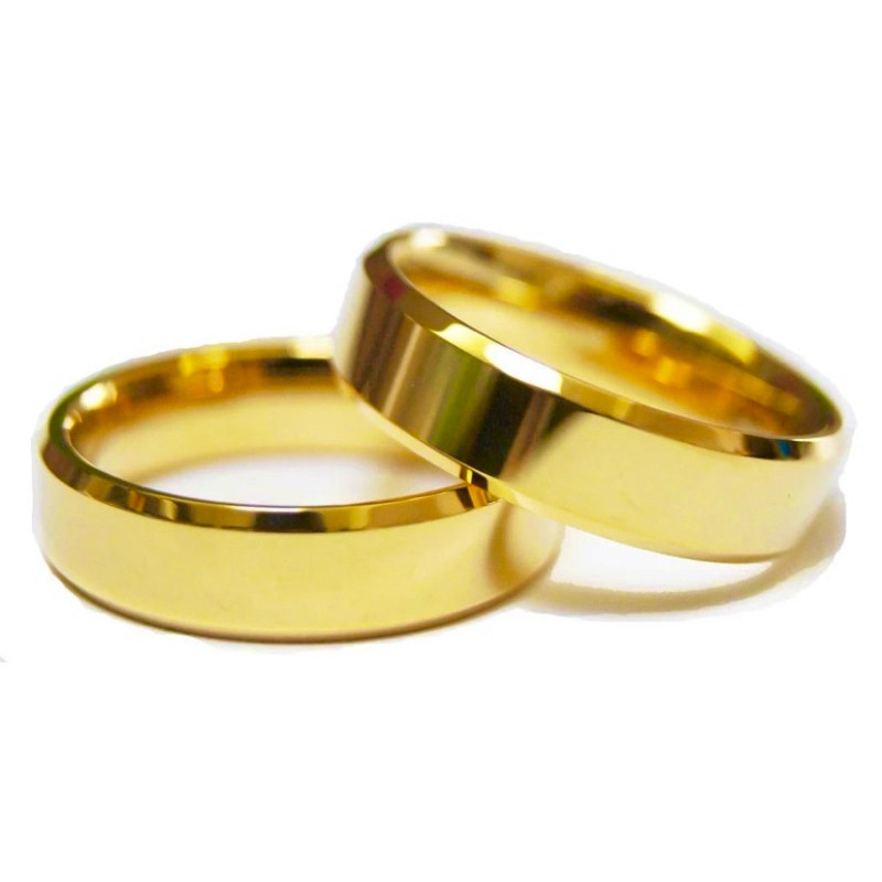 Par Aliança e Anel Solitário 4MM Noivado Casamento compromisso 100% em moeda cor de ouro 18k