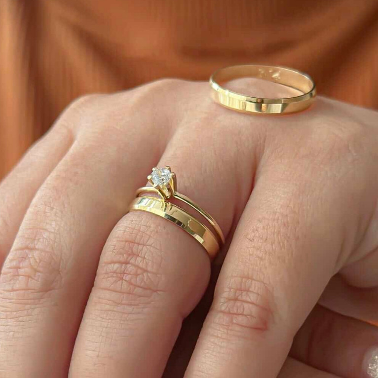 Par Alianças Chanfrada 4MM Casamento Noivado Moeda Antiga Banhada a Ouro18k + Anel + Gravação