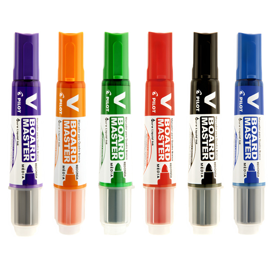 Kit Econômico 6 Marcadores Recarregáveis Pilot V-Board Economia e Qualidade para Quadro Branco