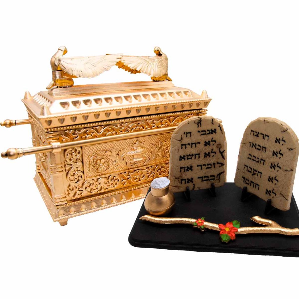 Kit Arca Da Aliança 30cm Com Elementos Tábuas Vara Arão Maná