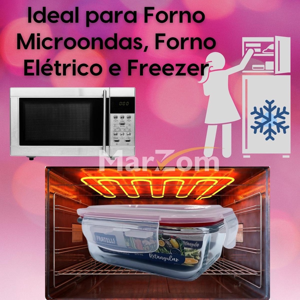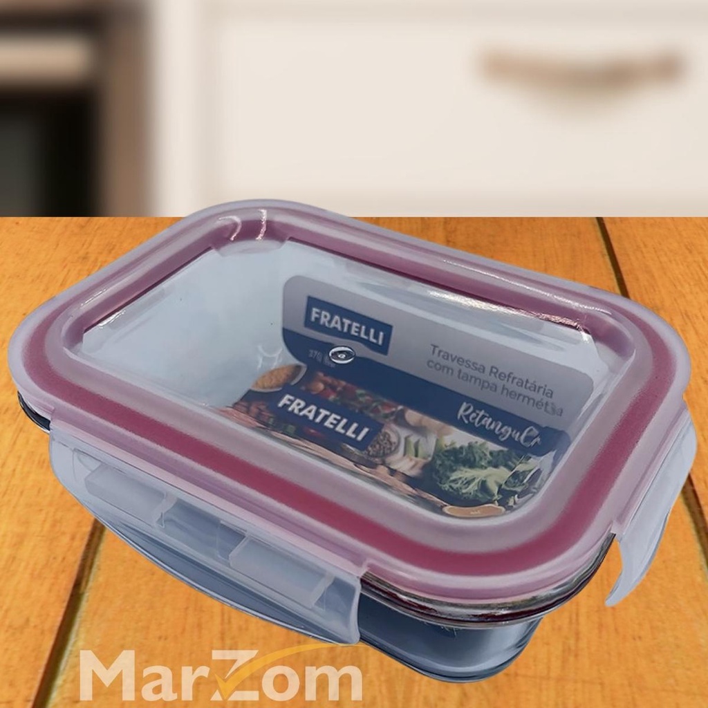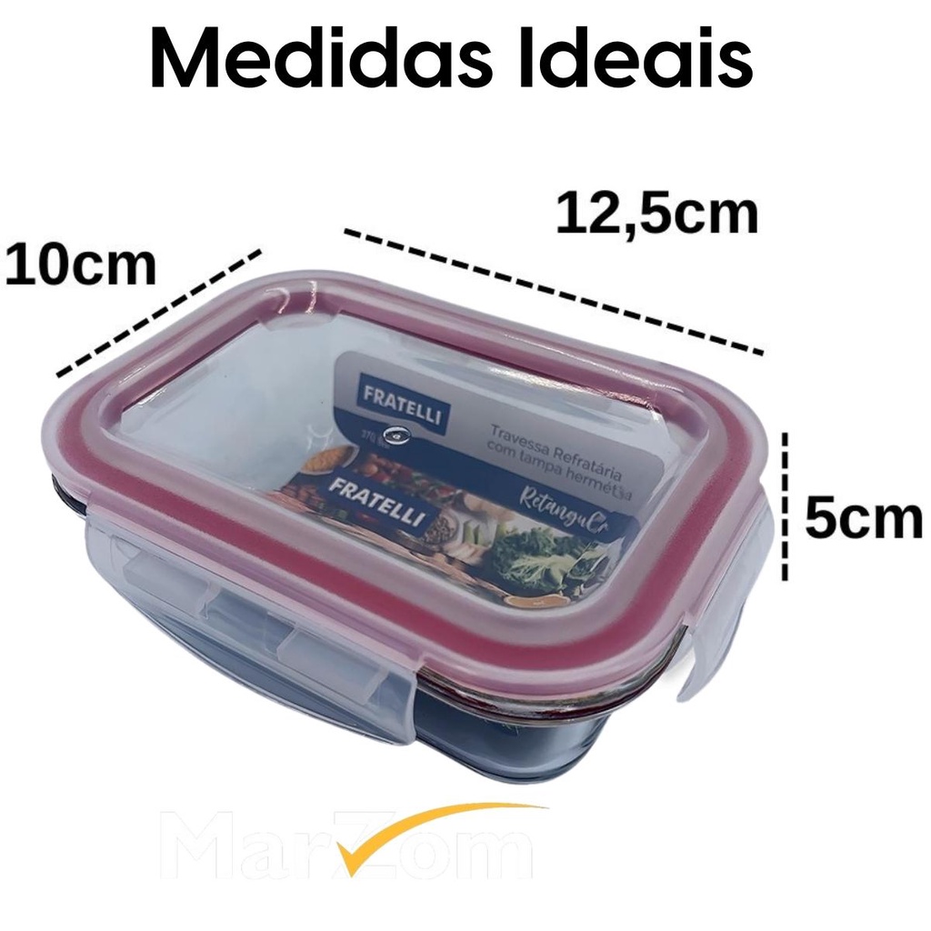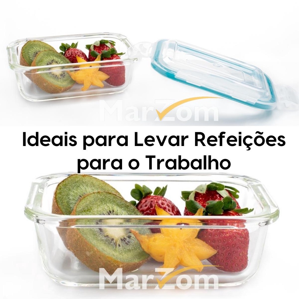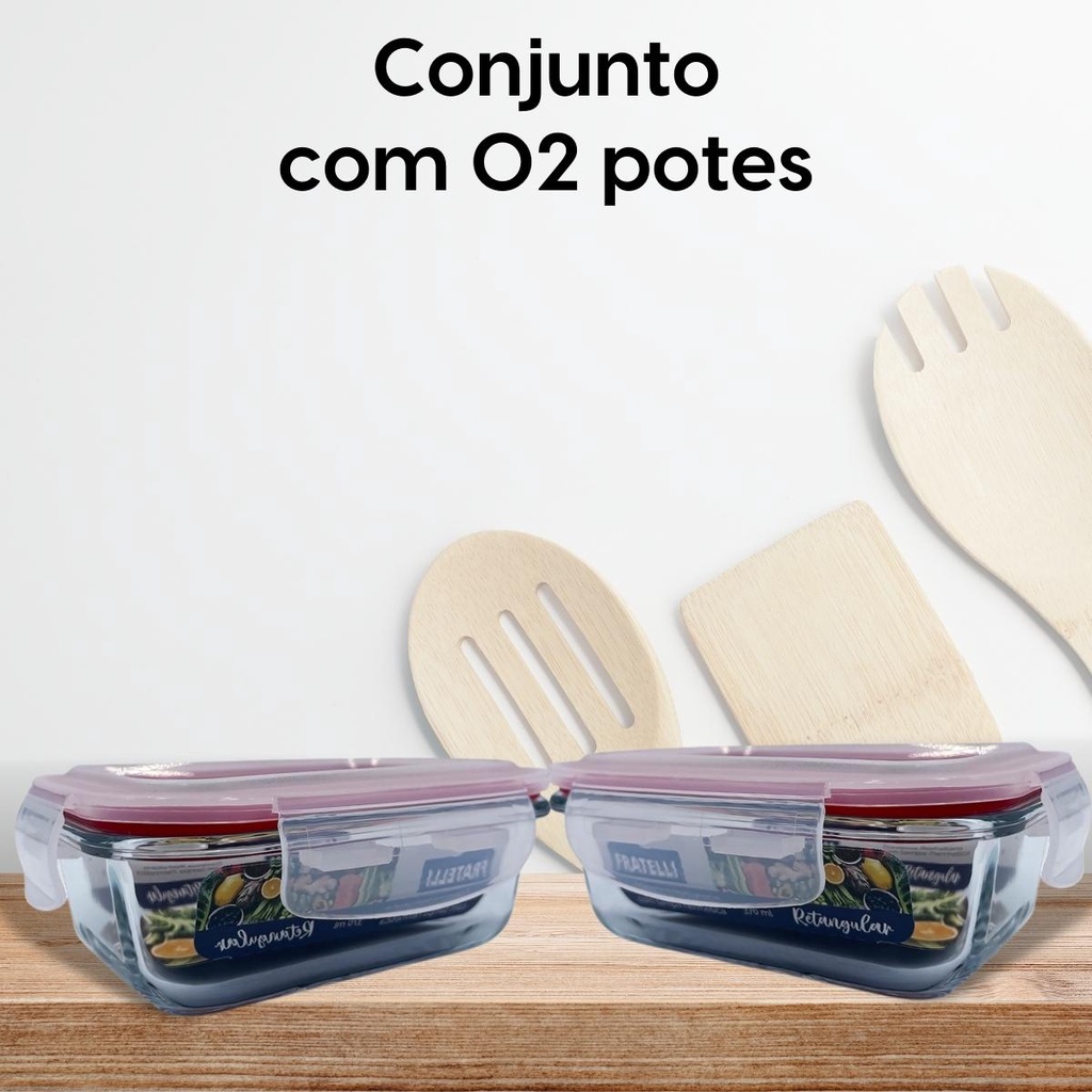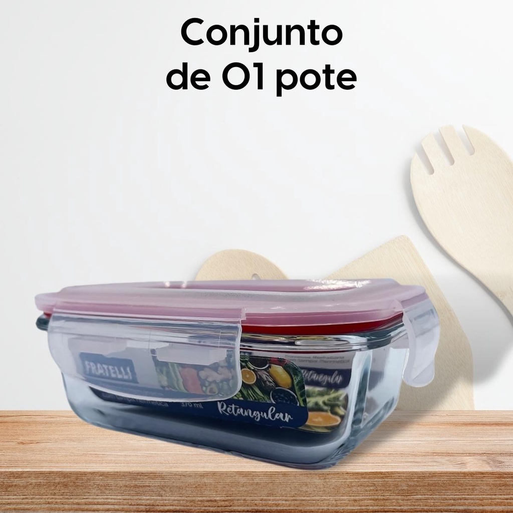 Pote de Vidro Hermético Marmita Tampa Plástico com Trava 370ml - Conjunto 2 ou 4 Potes Vidro Marmita Fit 4 Travas para Microondas Forno e Freezer Promoção - Tapoer de Vidro com Tampa - Potes de Vidro para Mantimentos