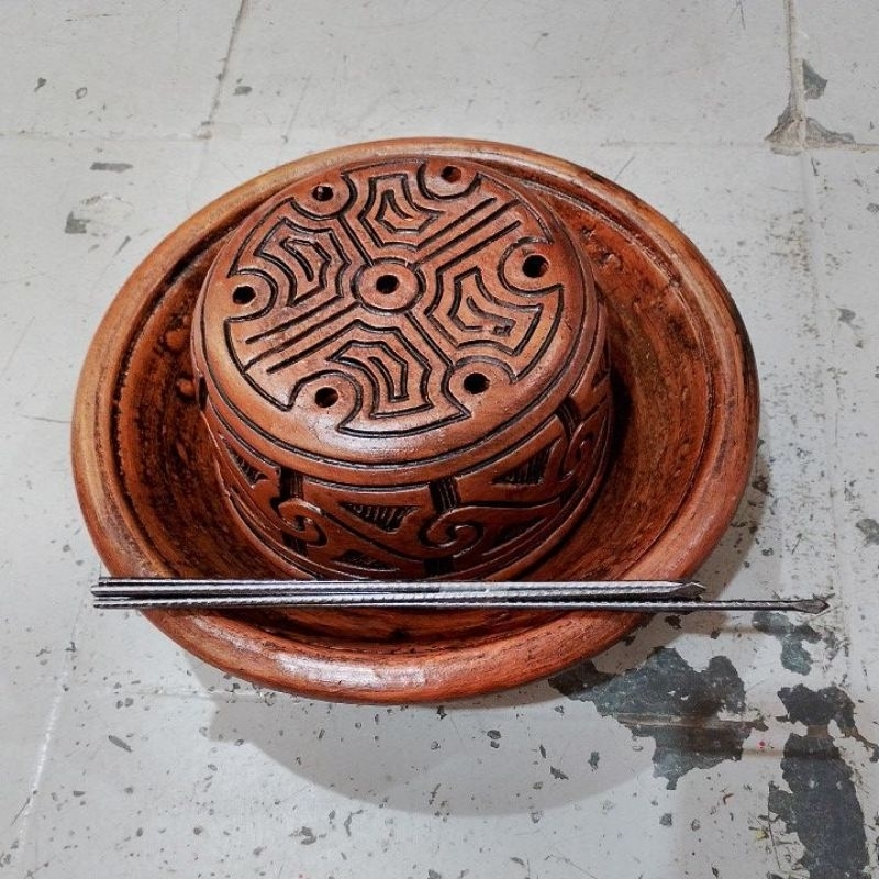 Cuscuzeira Cerâmica Barro Marajoara tamanho G Completa cor Betume