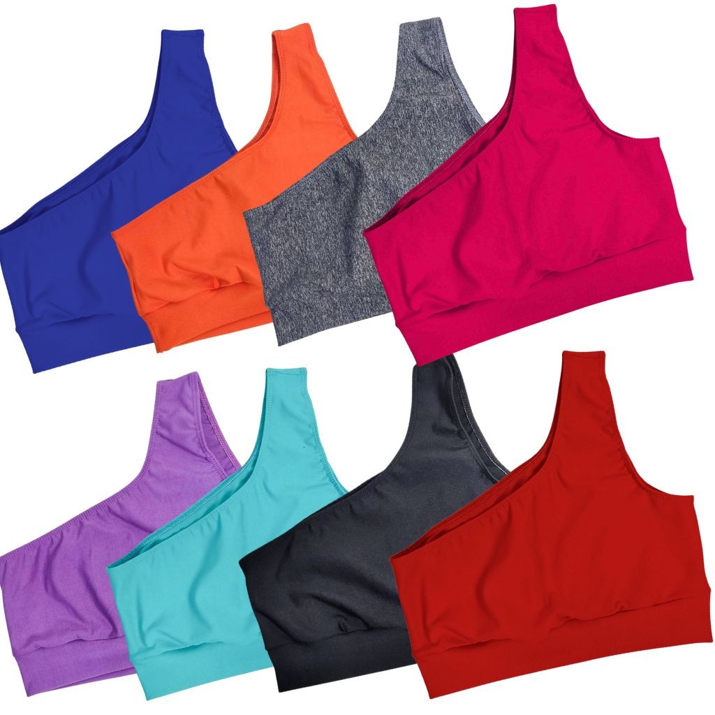 Top Cropped Fit Feminino Regata Um Ombro Só Suplex Cores