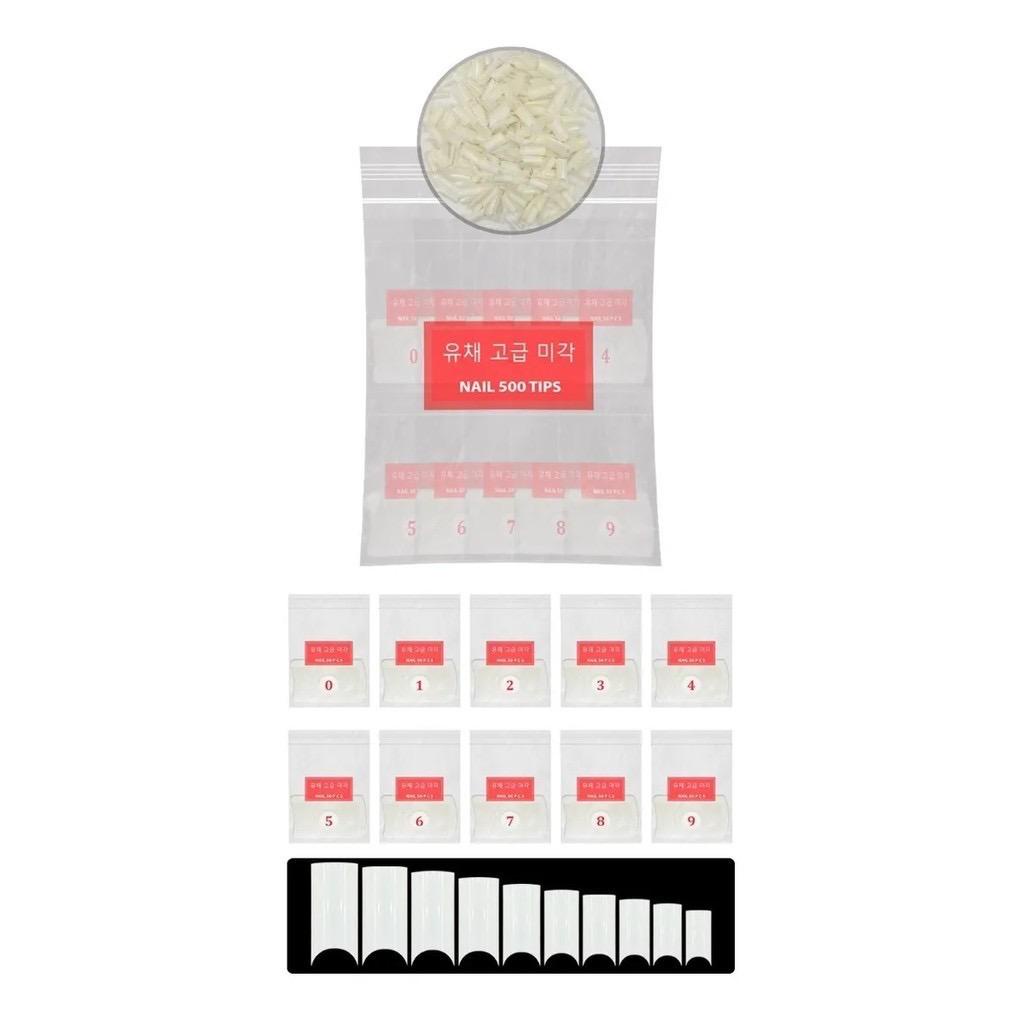 Kit 500 Unhas Tips Natural Leitosa Postiças Curvatura C em Cor Natural ou transparente