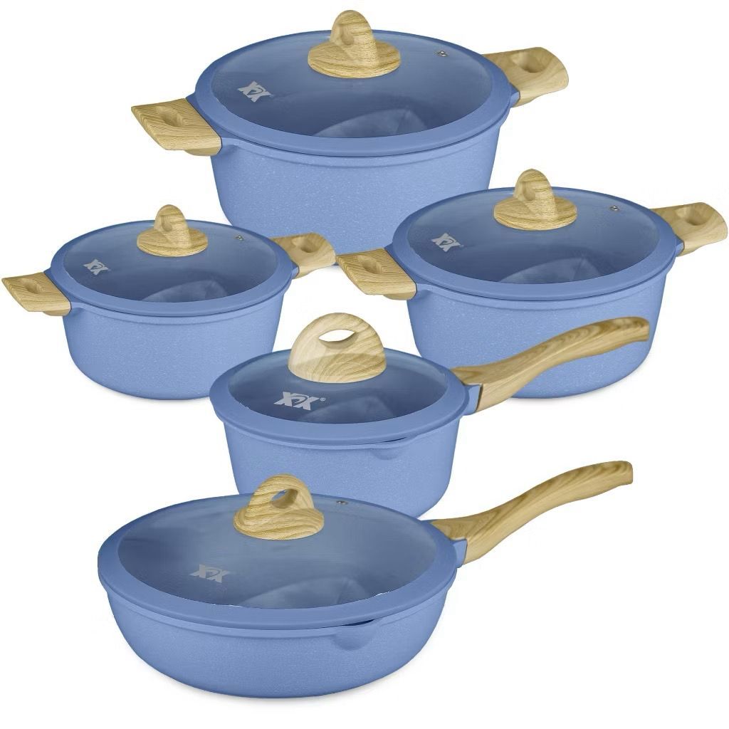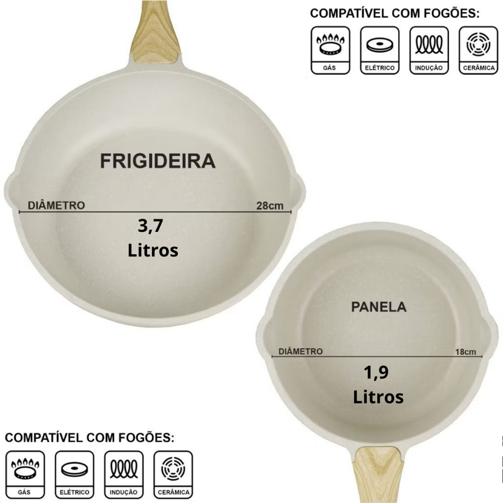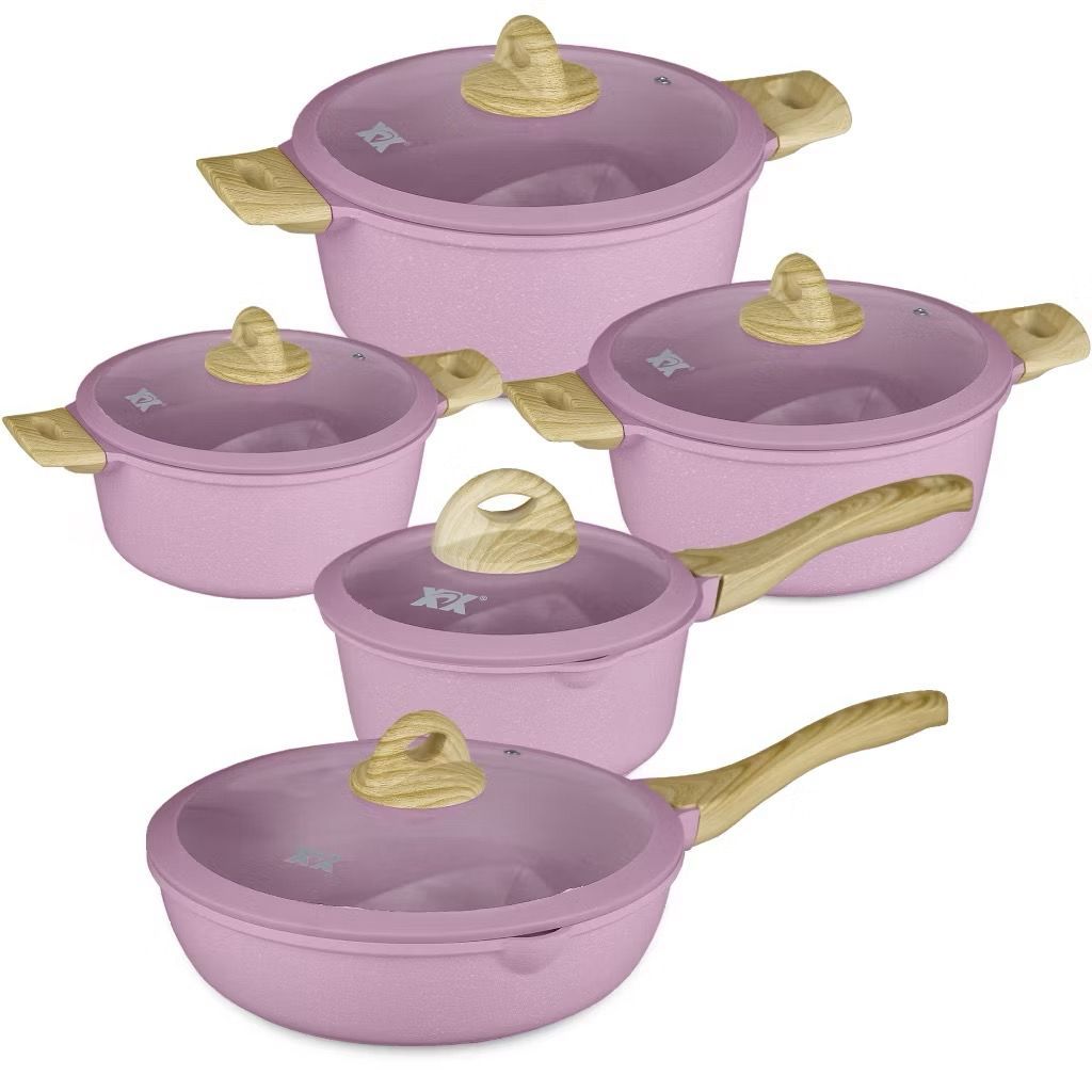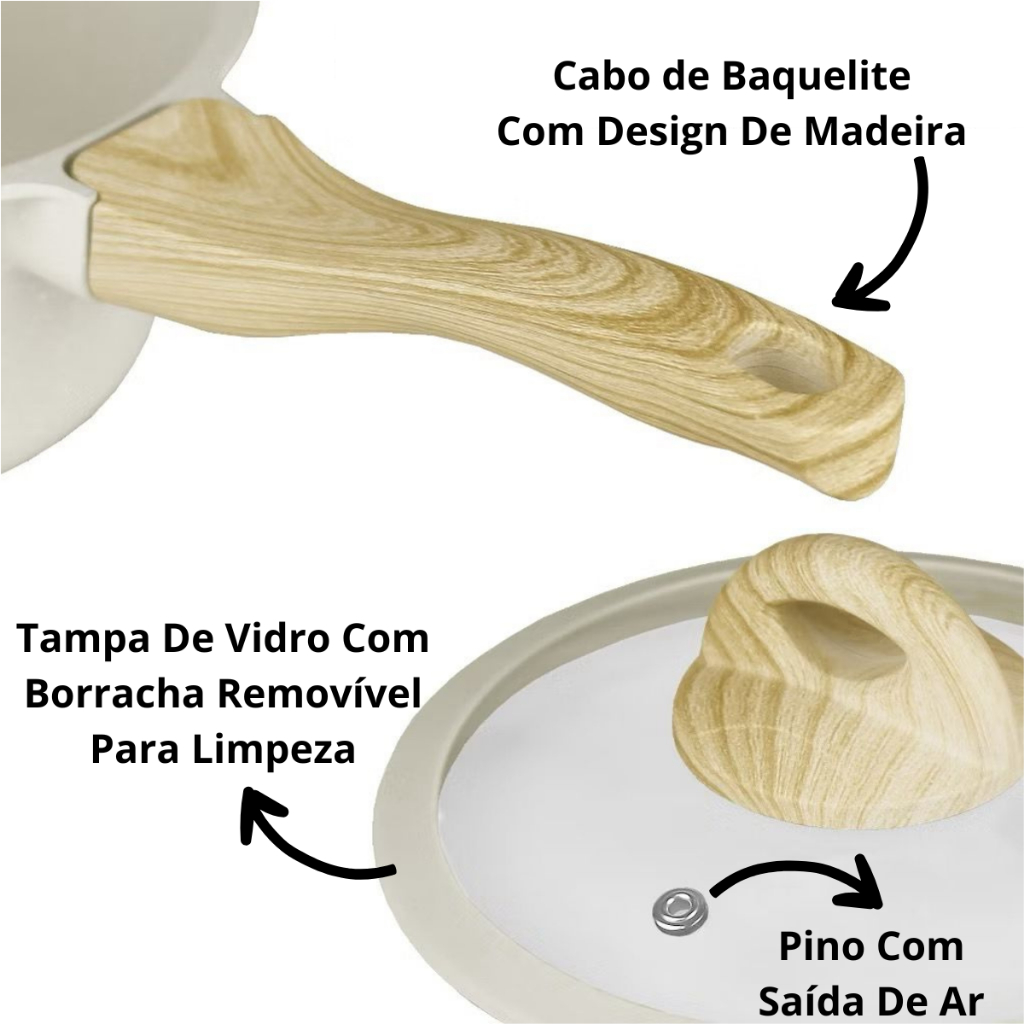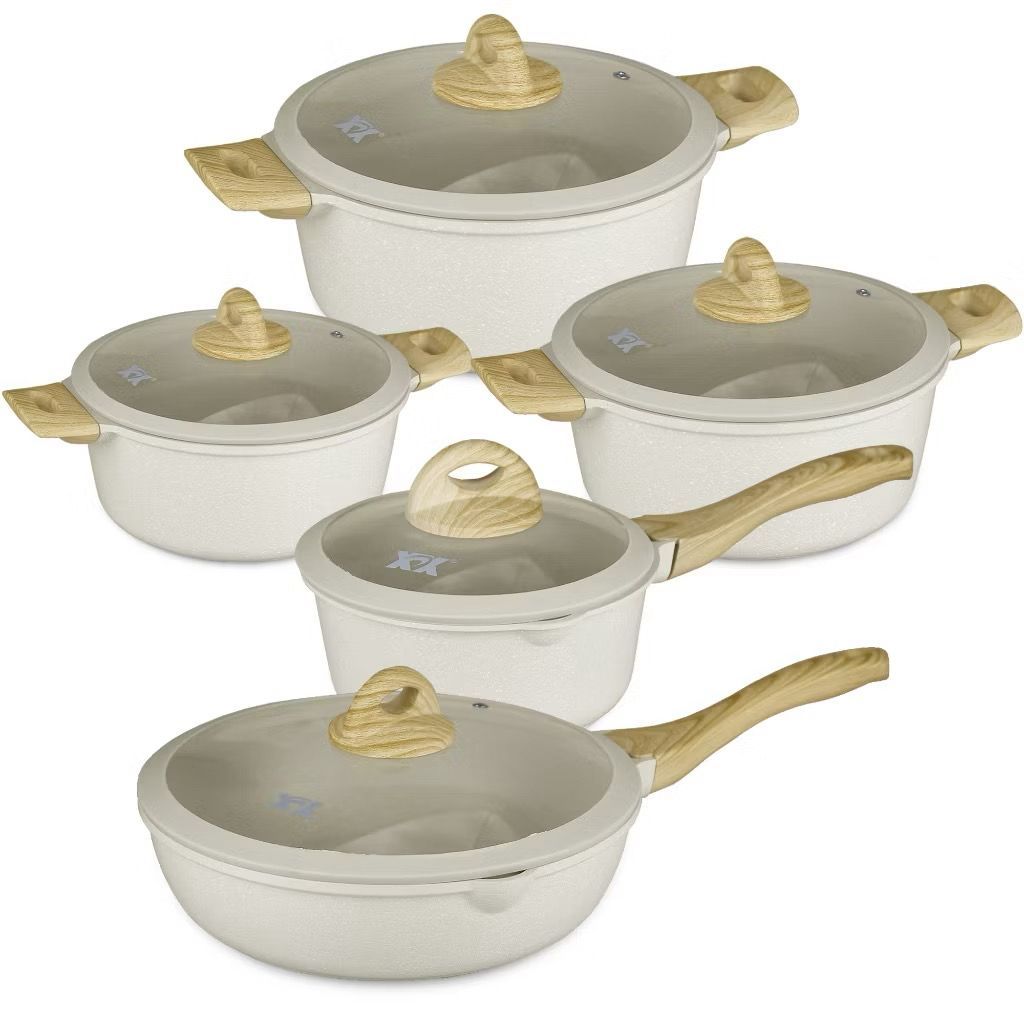 Jogo De Panelas 5 Peças Antiaderente Indução Gás Conjunto Revestido Cerâmica Granito Caçarola Frigideira
