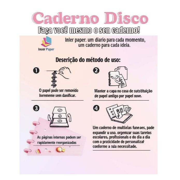 Caderno Disco Com Pingente Divertido Colorido Folhas Pautadas Criativo A5