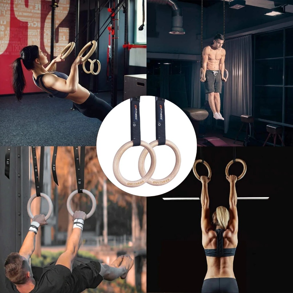 Kit 2 Argolas de Suspensão Madeira para Crossfit e Ginástica