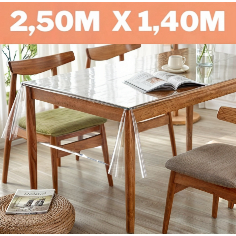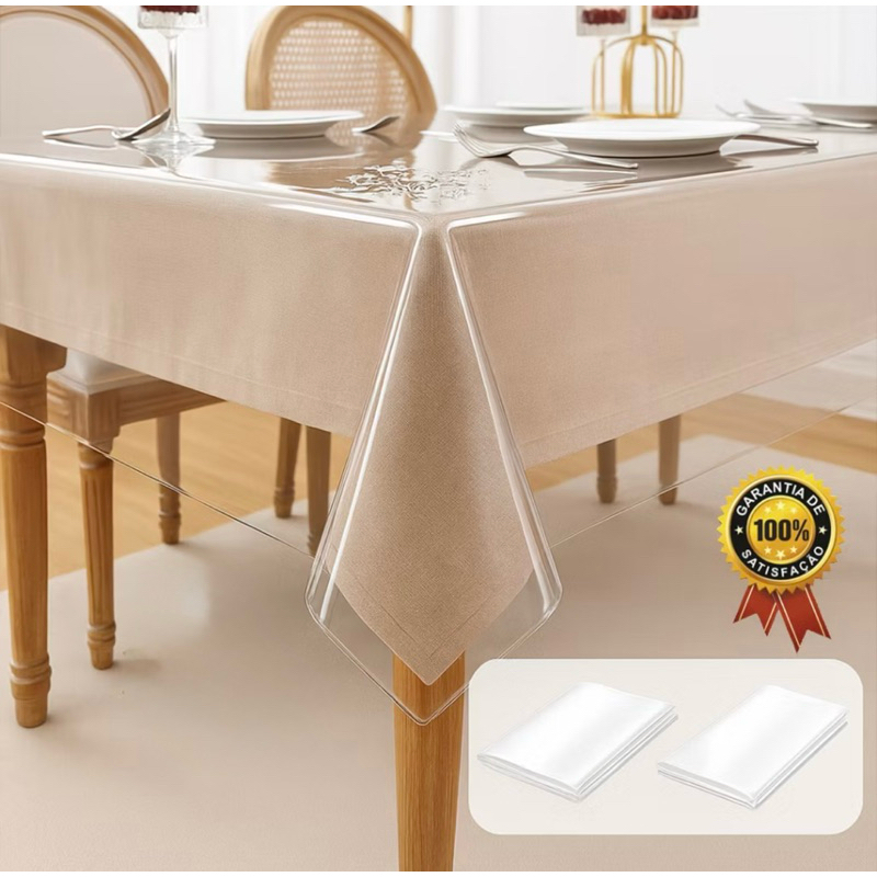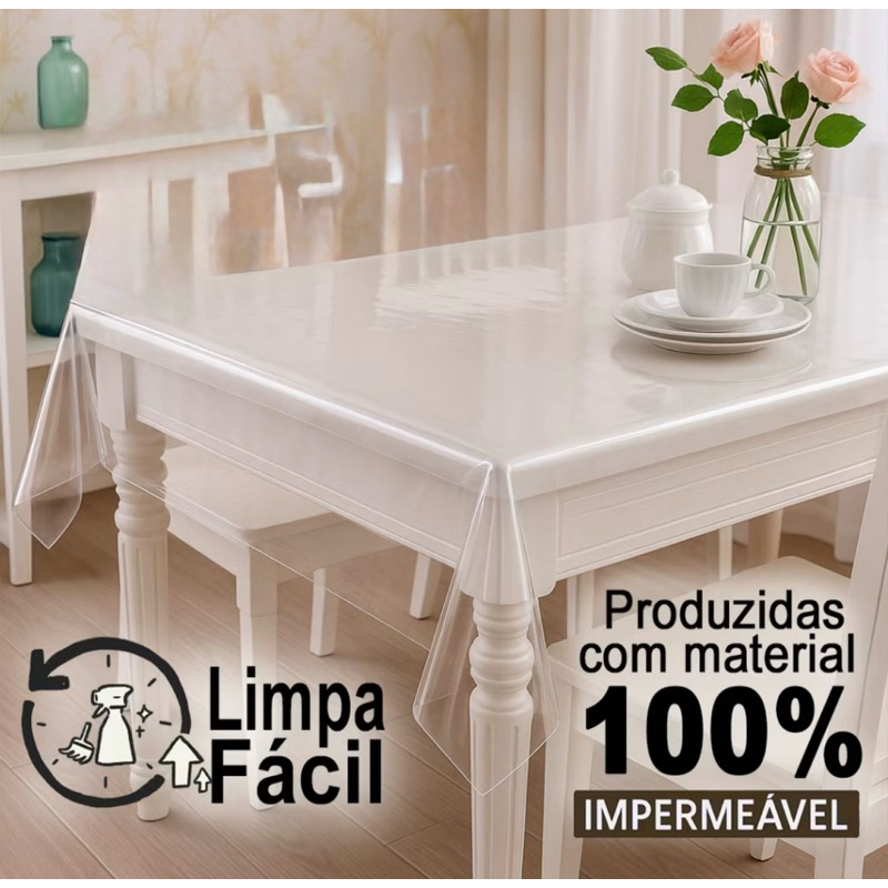 Toalha de Mesa Transparente PVC Premium 0,10mm| Antiderrapante | Anti Mancha | Protege Madeira | Várias Medidas