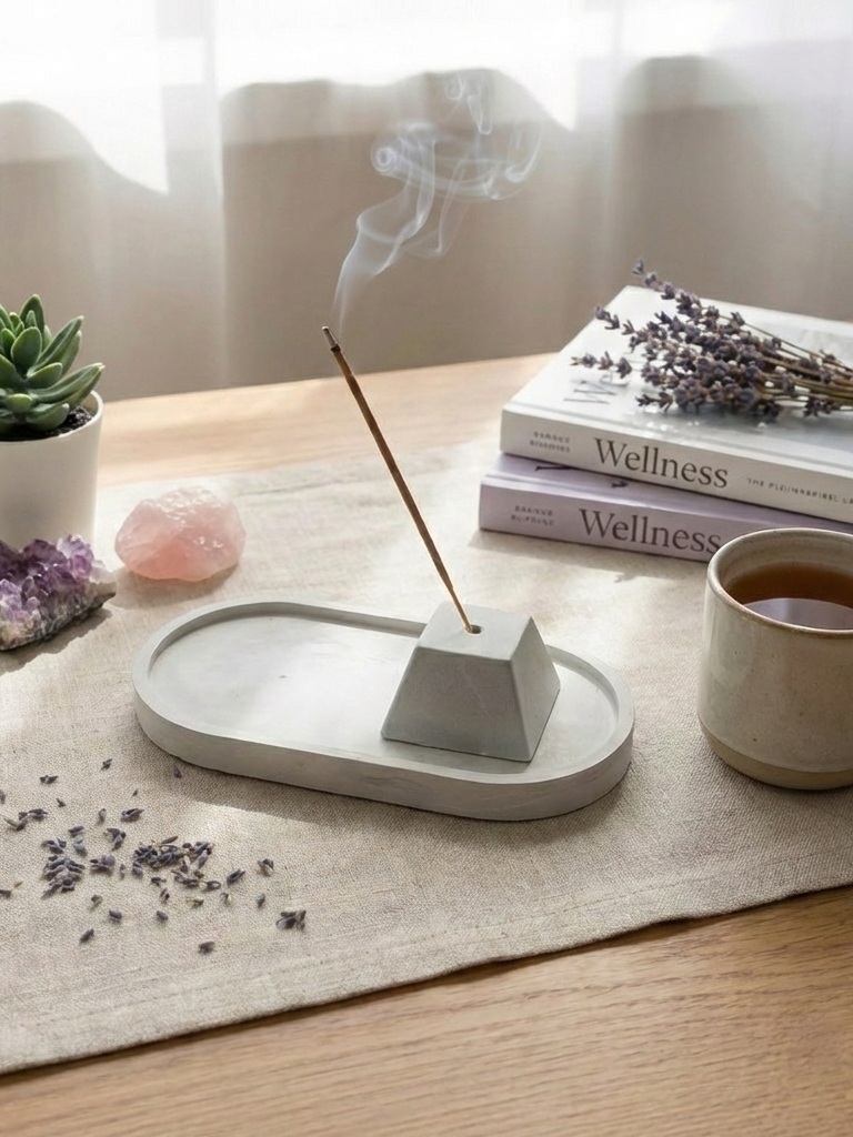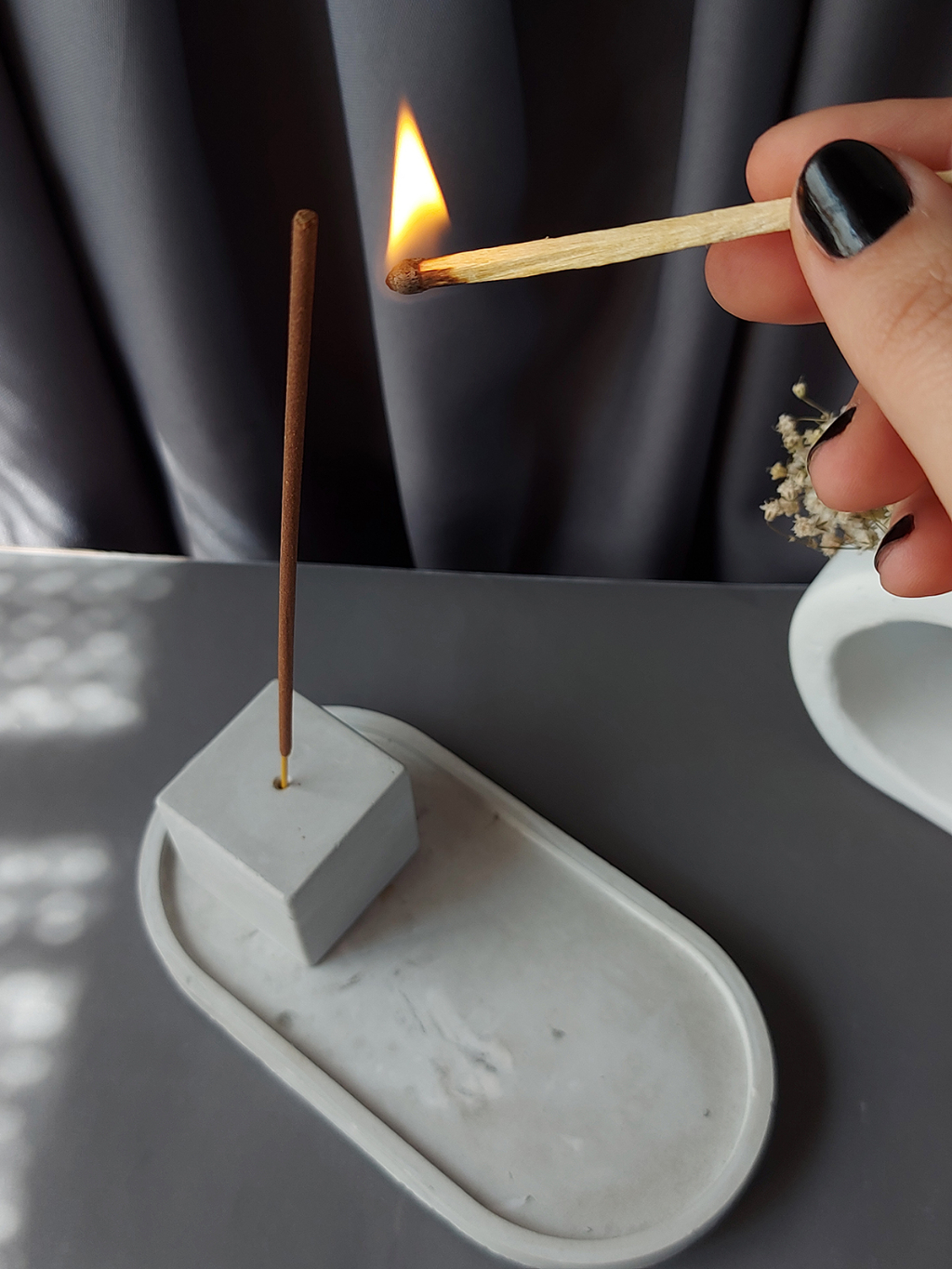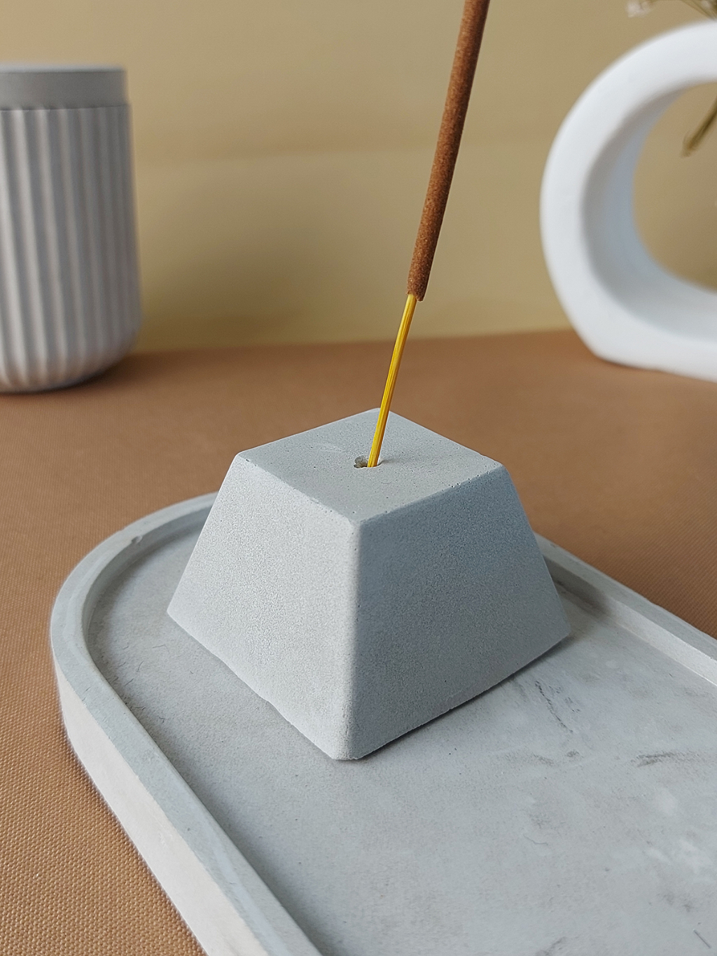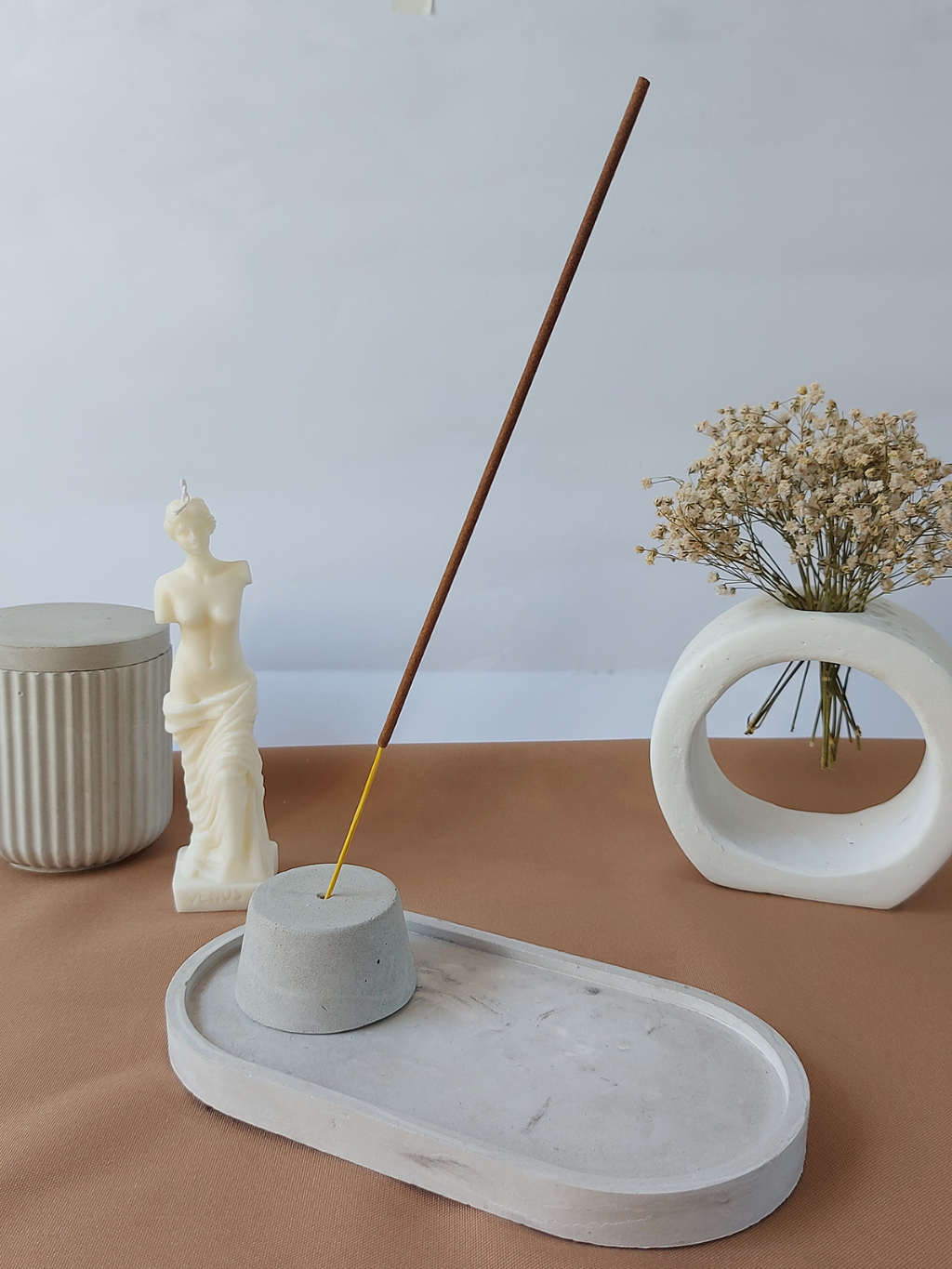 Kit Porta Incenso de Cimento com Bandeja Decorativa | Minimalista Zen