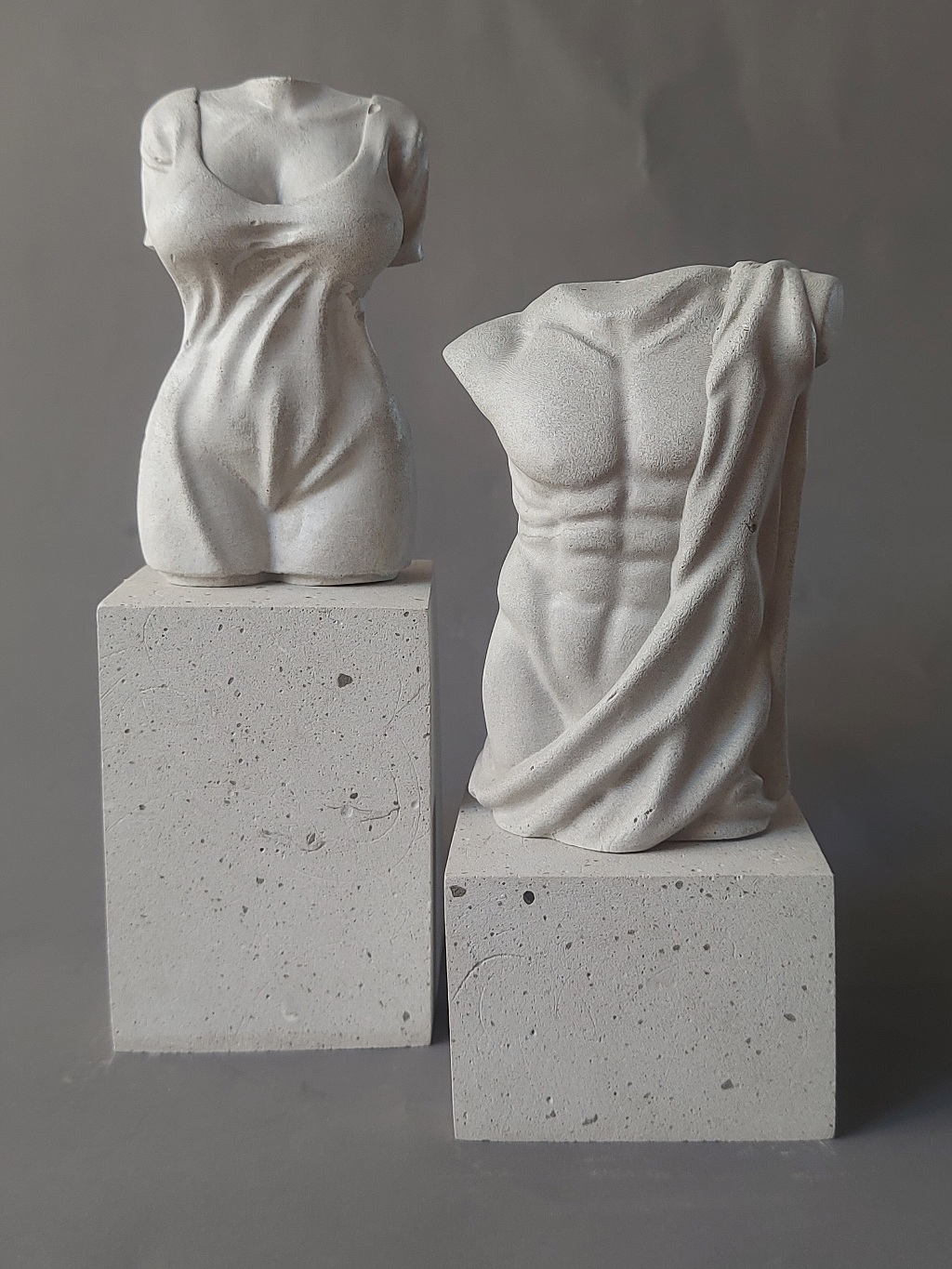 Estátua decorativa deuses gregos | Apollo e Artemis | Corpo masculino e feminino de cimento
