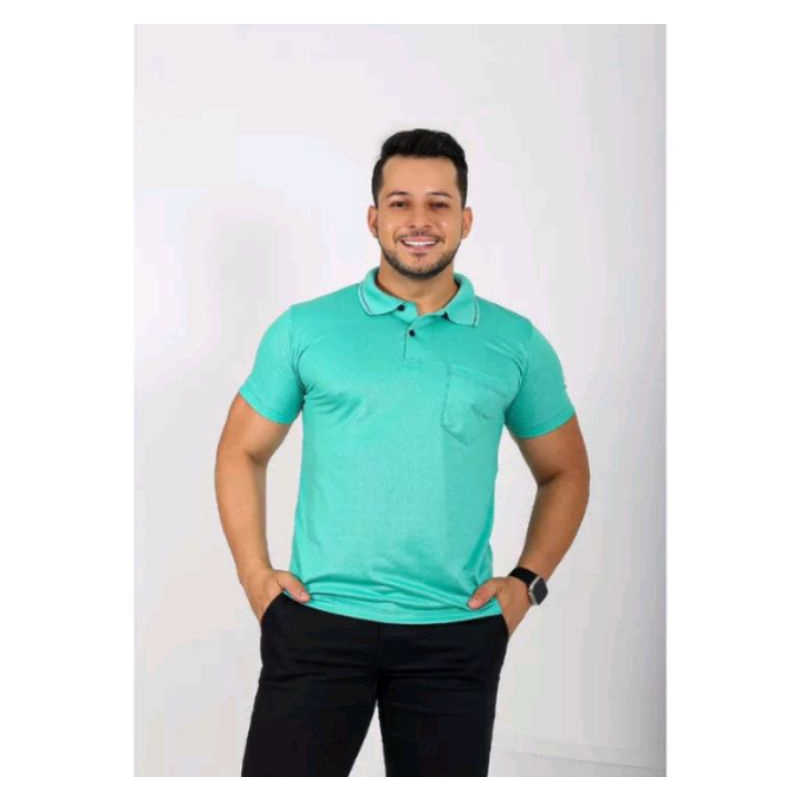 Camiseta Camisa Gola Polo Malha Masculino Pike com Bolso Lisa Básica Casual