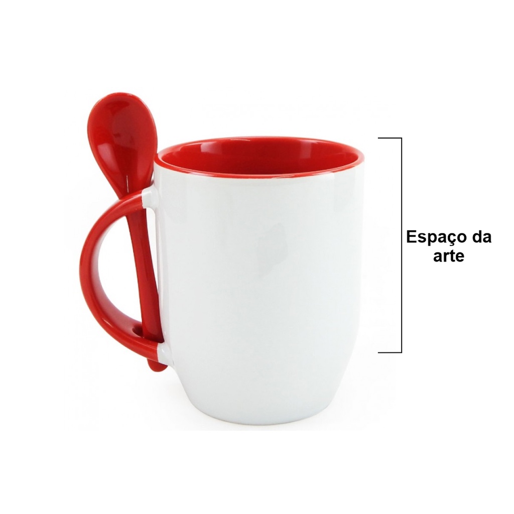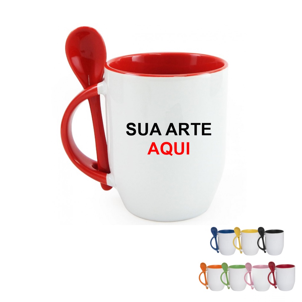 Caneca de Cerâmica 325ml C/ Colher - Alça e Interior Colorido - Personalizada