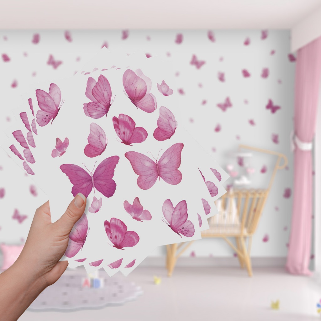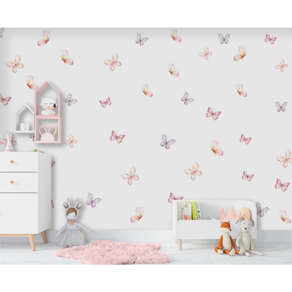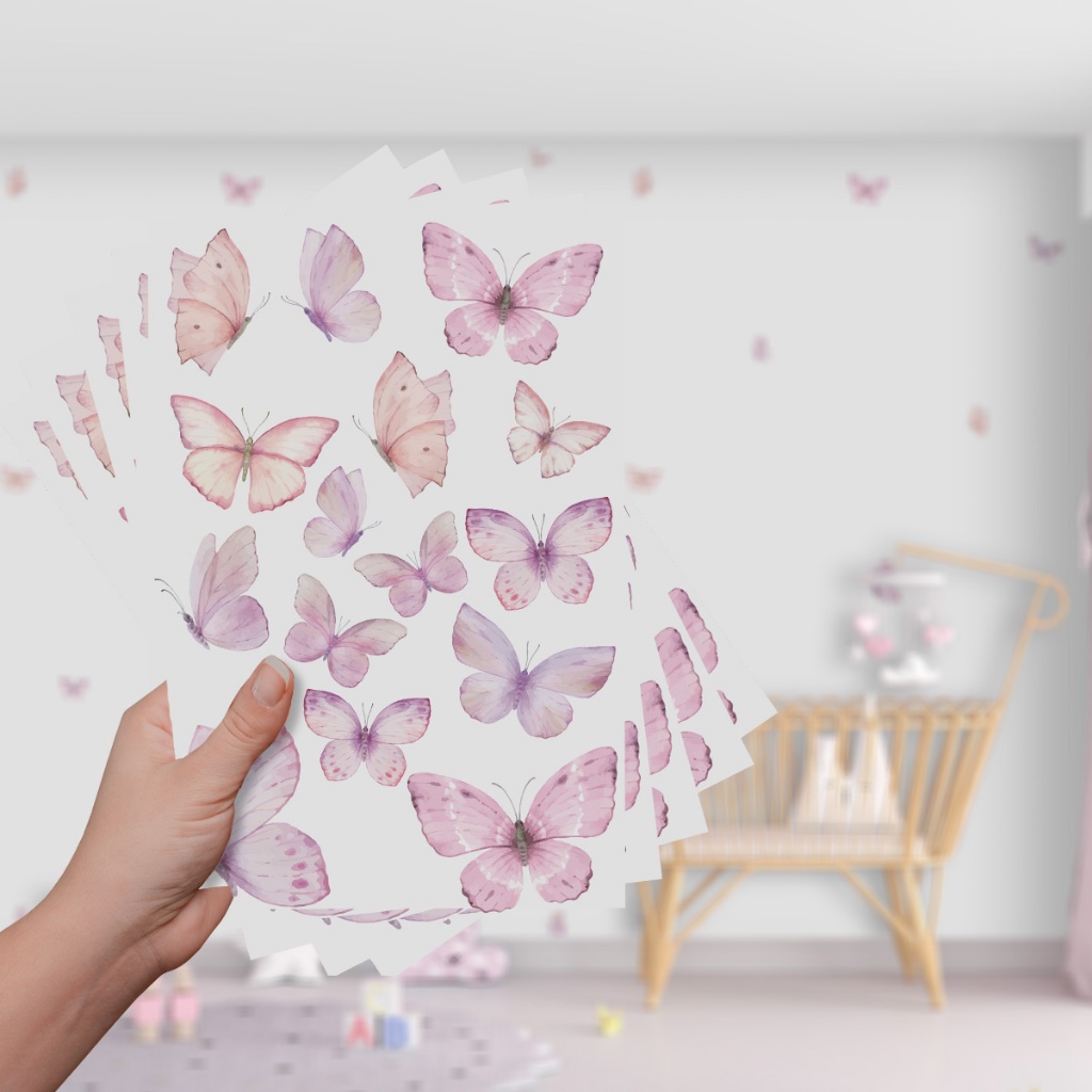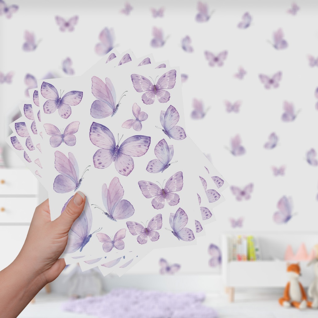 Adesivo De Parede Decorativo Autocolante Borboletas Lilás Quarto Sala Infantil Menina