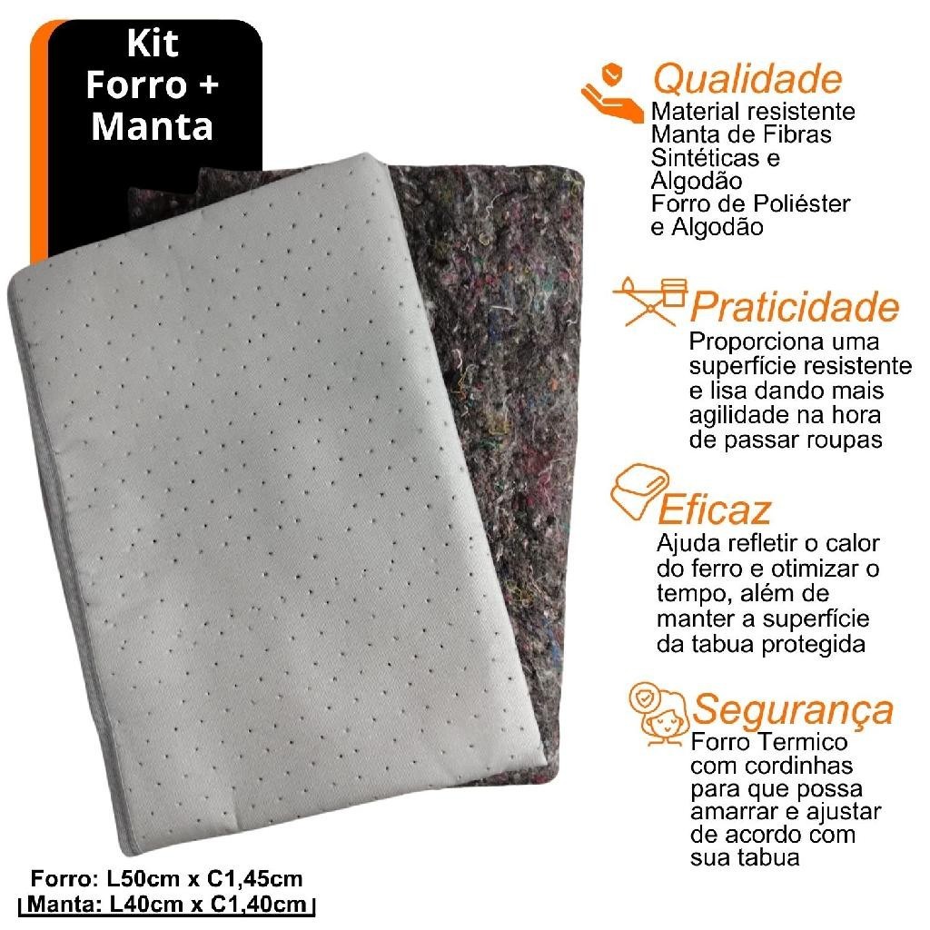 Kit Manta 1,40x40cm + Forro Termico 1,45x50cm De Tabua De Passar Roupa Cor Cinza Forro Com Cordão