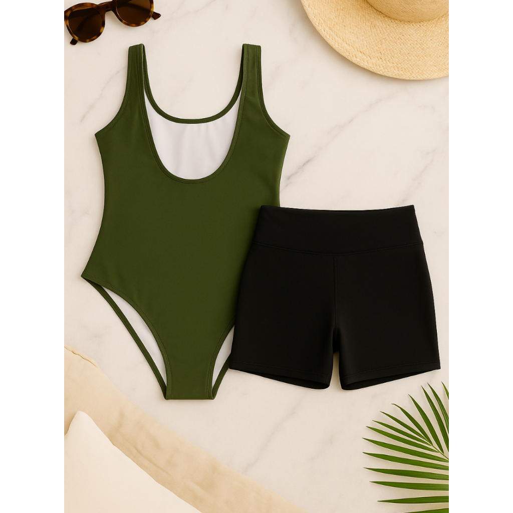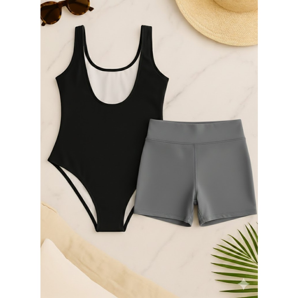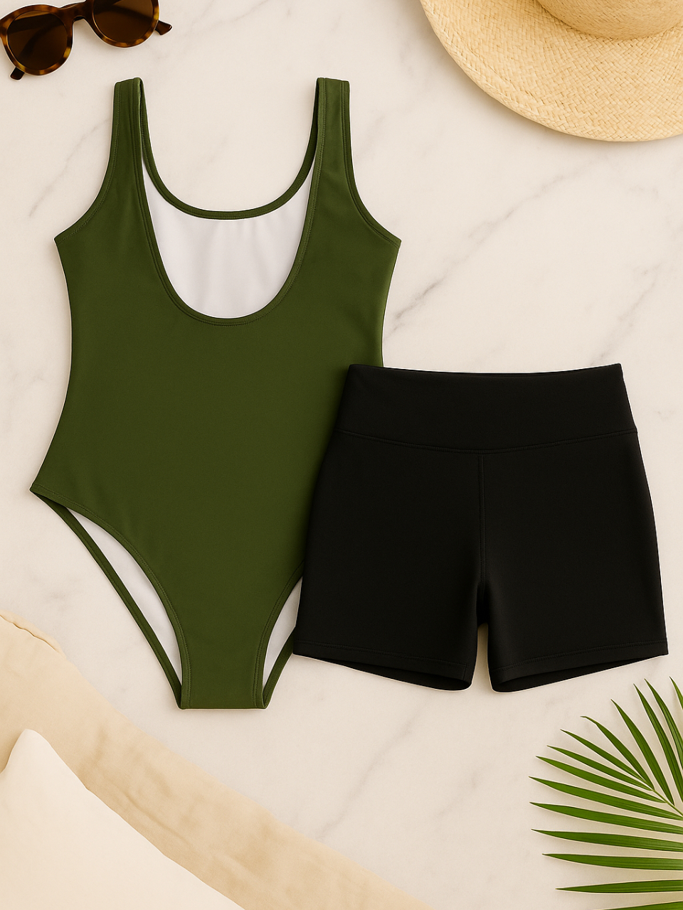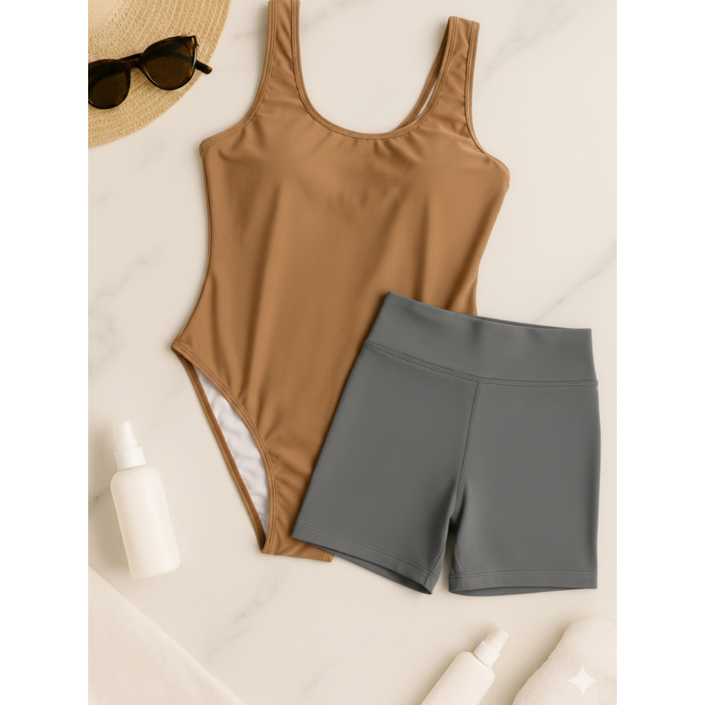 Maiô + Shorts Legging Feminino – Look Praia Confortável e Estiloso