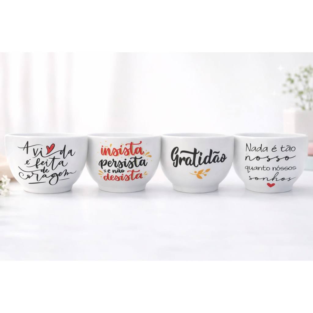 KIT CUMBUCA DECORADA DE PORCELANA TEMA -INSPIRACAO - 440 ML -BOWL--AD1