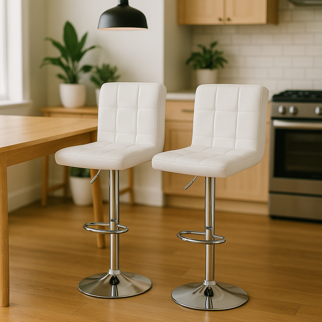 Kit 2 Banquetas Altas Gomos Estofadas Giratórias Com Regulagem para Cozinha Bar Restaurante Brancas