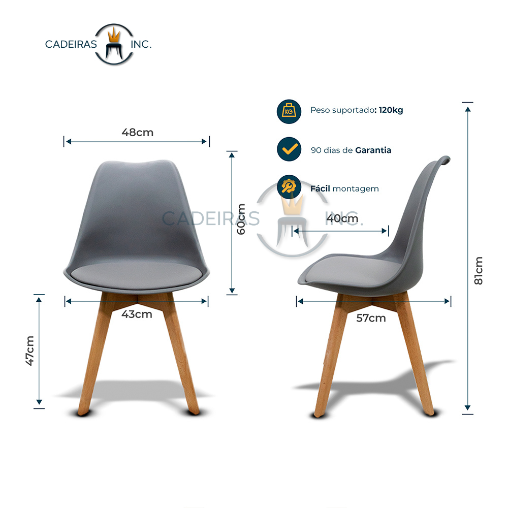 Cadeira de Cozinha Jantar Estofada Charles Eames Saarinen Leda Design Cinza
