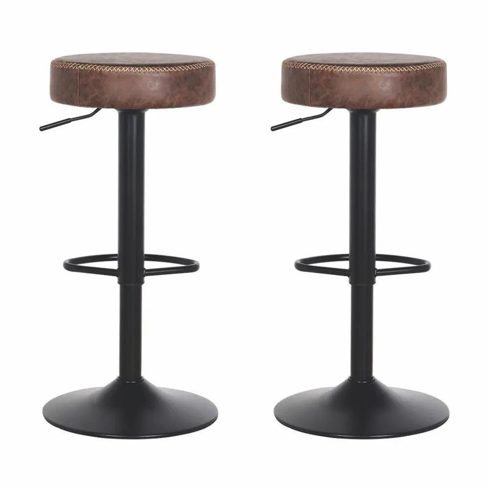 Kit 02 Banquetas Altas Estofadas Giratórias para Cozinha e Bar com Regulagem de Altura Viena Marrom