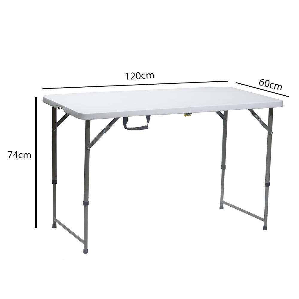 Mesa Dobrável De Plástico Vira Maleta Para Camping Praia Churrasco 120X60cm Branco