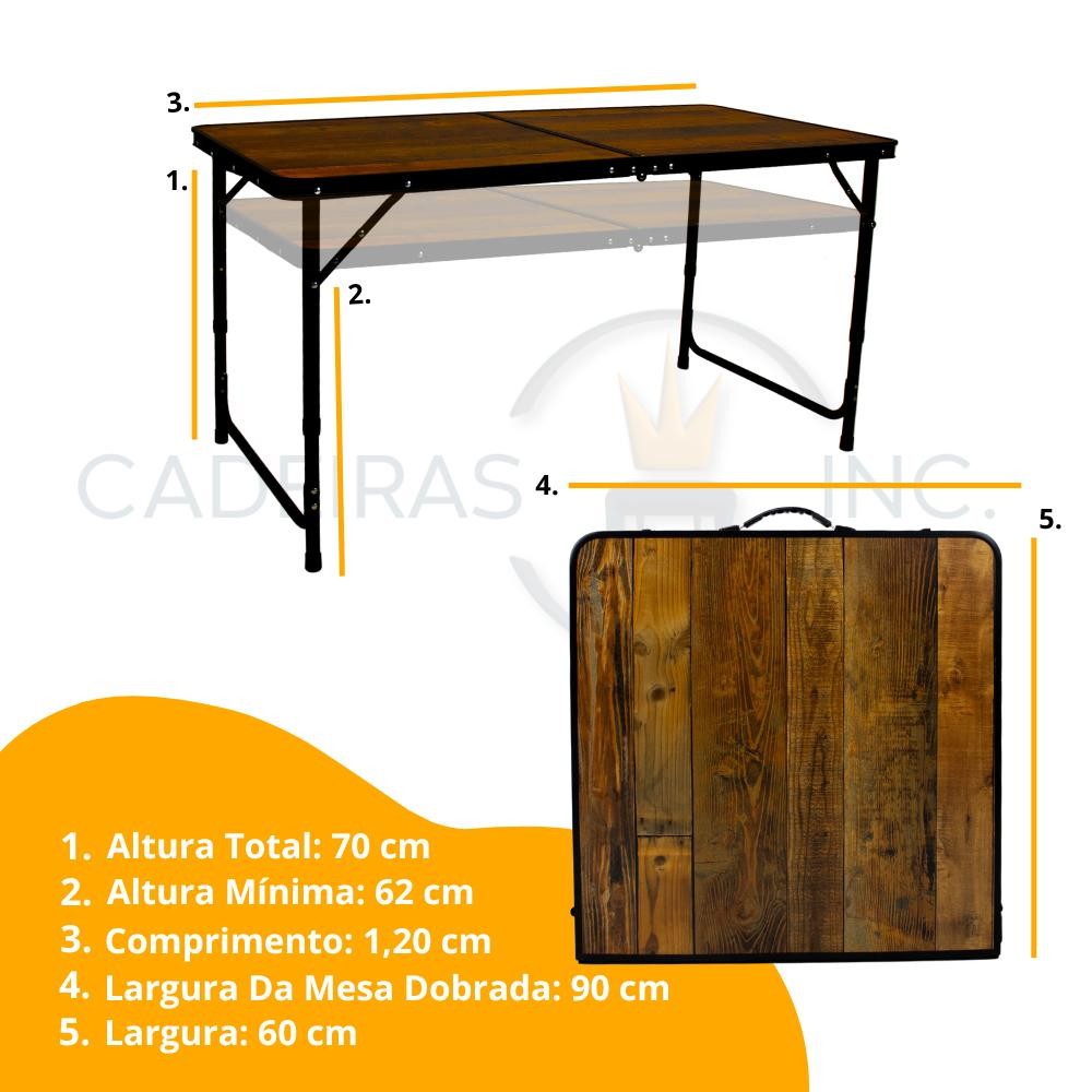 Conjunto Mesa Dobrável Portátil Que Vira Maleta Para Camping Praia Leve Alumínio 120cm Madeira + 4 Banquinhos Dobráveis
