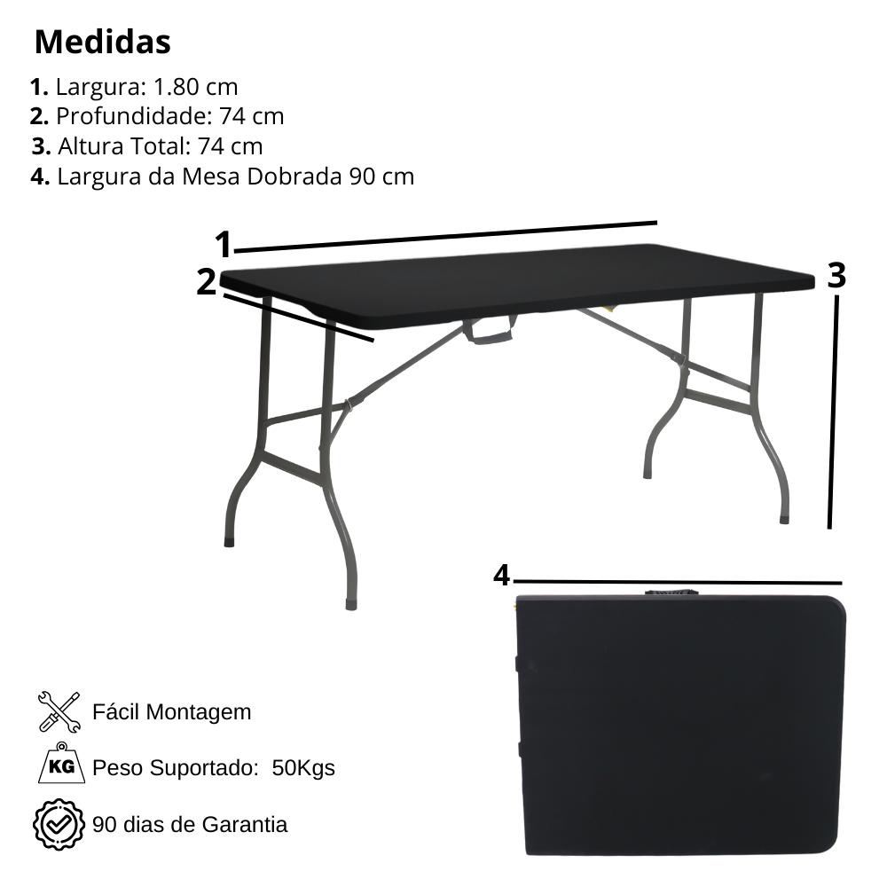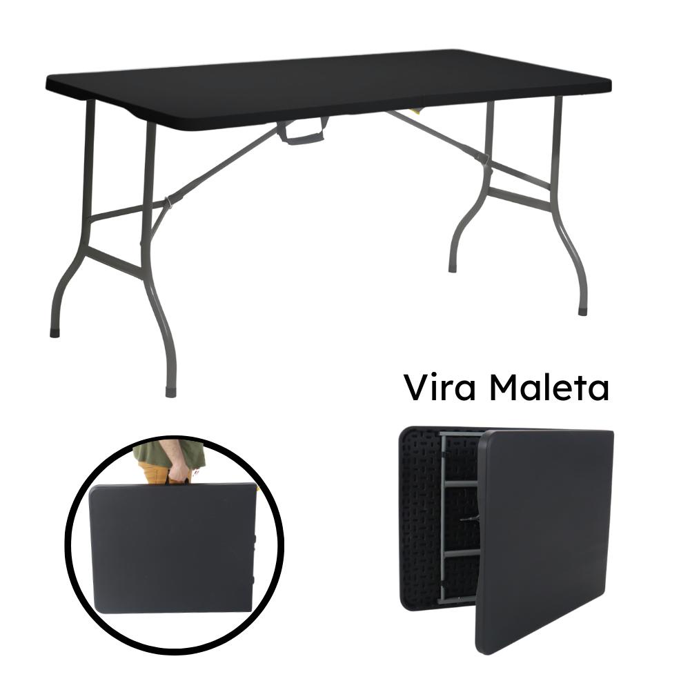 Mesa Dobrável Portátil De Plástico Que Vira Maleta Para Camping Praia Churrasco 180x74cm Preta