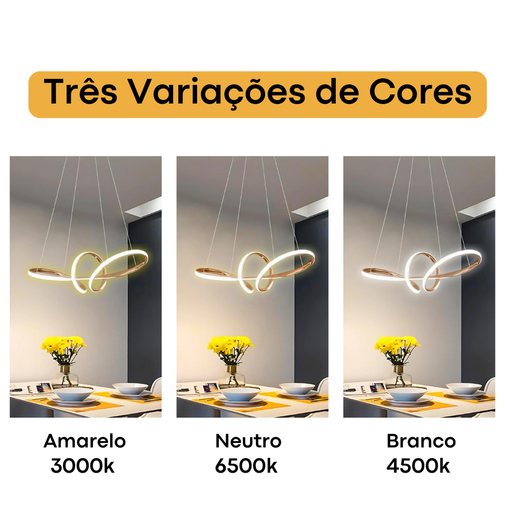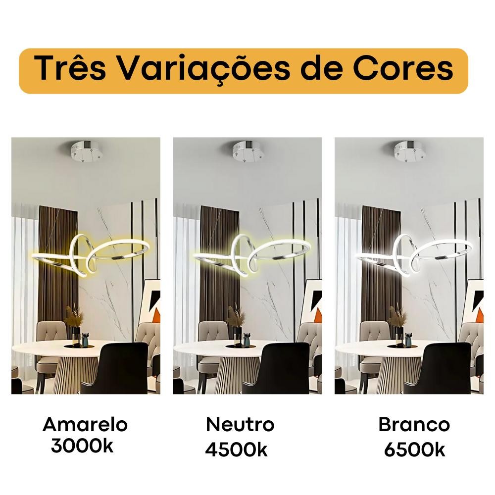 Luminária Lustre Pendente Led De Teto Sala De Jantar Design Moderno Loop 45W 3 Em 1 Bivolt