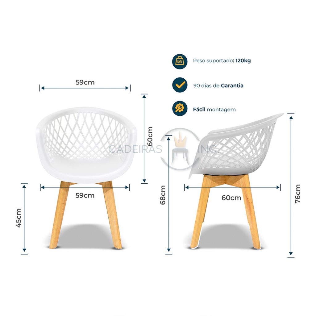 Kit 3 Cadeiras Para Mesa De Jantar Sala Cozinha Web Wood Branca Base Madeira