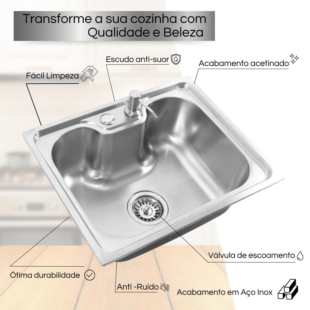 Cuba Para Pia Gourmet Cozinha Em Aço Inox Com Acessórios Completo 60x42cm