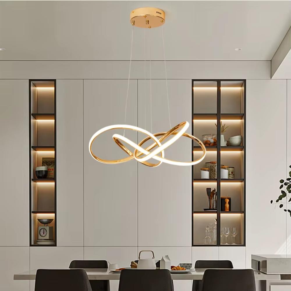 Lustre Pendente LED Flux 45W Dourado 3 em 1 Bivolt Design Moderno e Elegante
