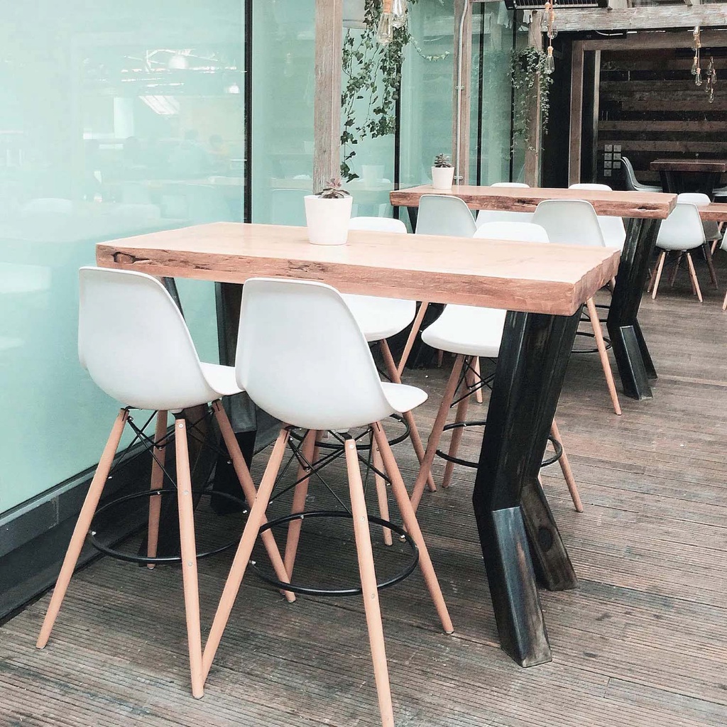 Banqueta Alta Para Cozinha Americana Bancada Ilha Charles Eames Eiffel Branca Base Madeira Wood