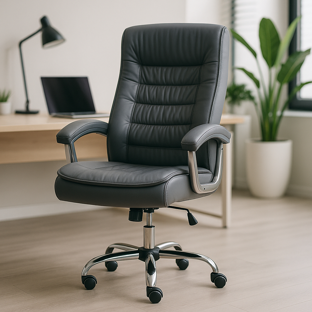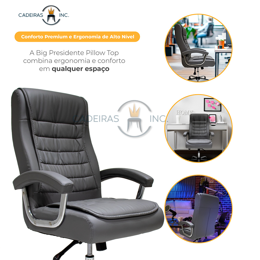 Cadeira Escritório Presidente Ergonômica Alta Com 42 Molas Ensacadas no Assento Base Giratória Cinza