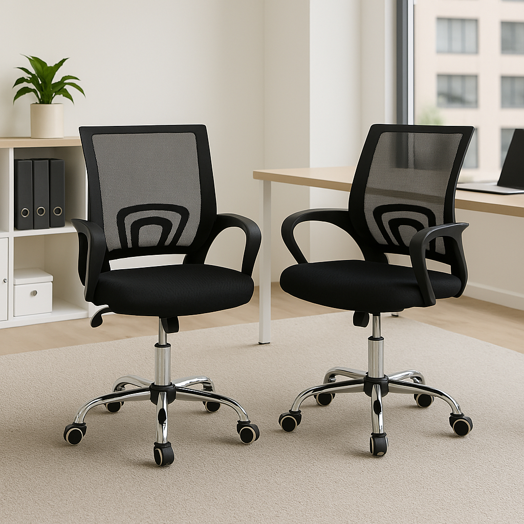 Kit 2 Cadeiras Escritório Diretor Estofadas Tela Mesh Detroit Preto Giratórias com Regulagem