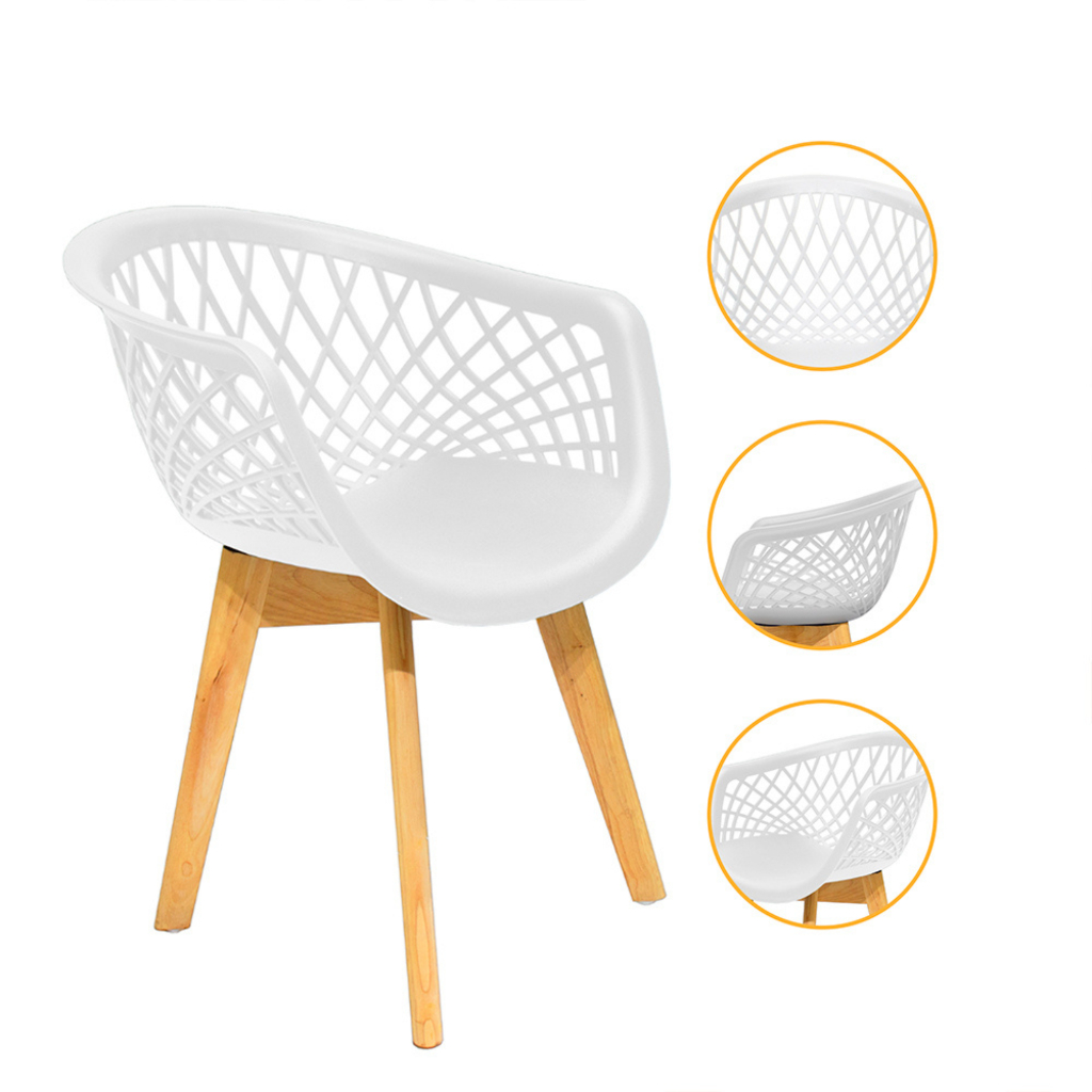Kit 4 Poltronas Cadeiras Jantar Cozinha Sala Varanda Area Gourmet Web Branca Wood Base Madeira