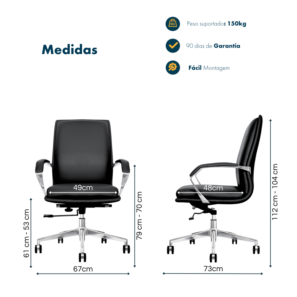 Cadeira de Escritório Home Office Diretor Orion Preto Assento Espuma laminada Base Giratória Cromada