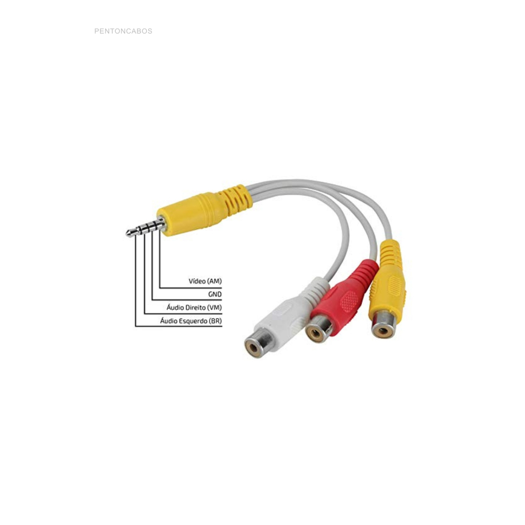 Cabo adaptador p3 para 3 rca femea