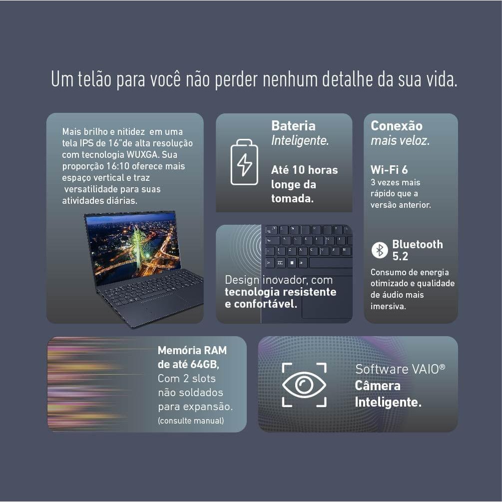 Notebook Vaio FE16 AMD® Ryzen 7-5825U Windows 11 Home 32GB RAM 512GB SSD 16" IPS WUXGA - Cinza