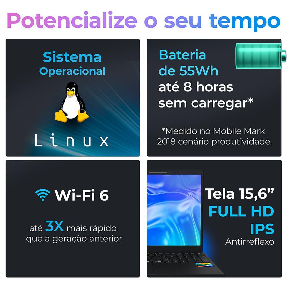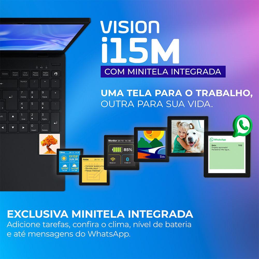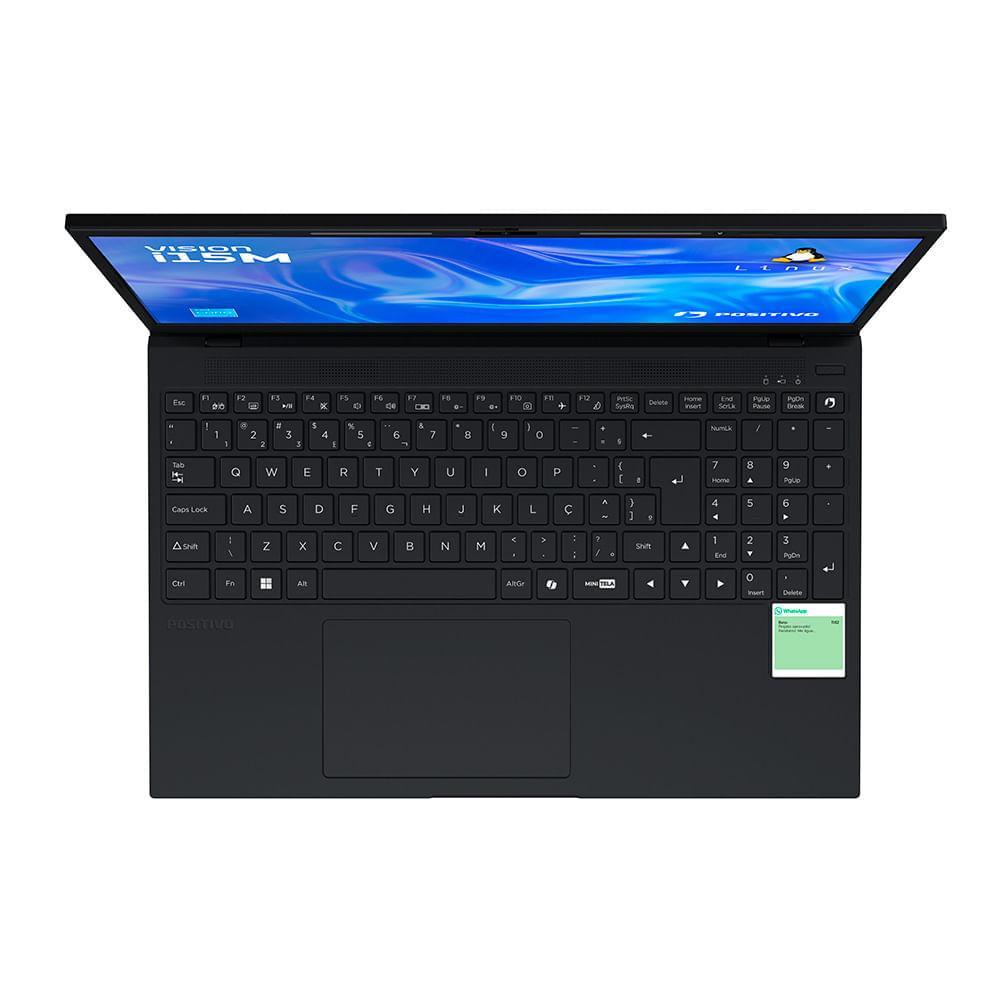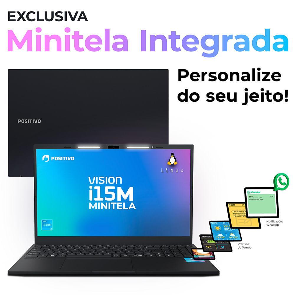 Notebook Positivo Vision i15M Minitela Intel® Core™ i3-N300 Linux 8GB RAM 256GB SSD Wi-Fi 6 - 15,6" Full HD IPS - Preto