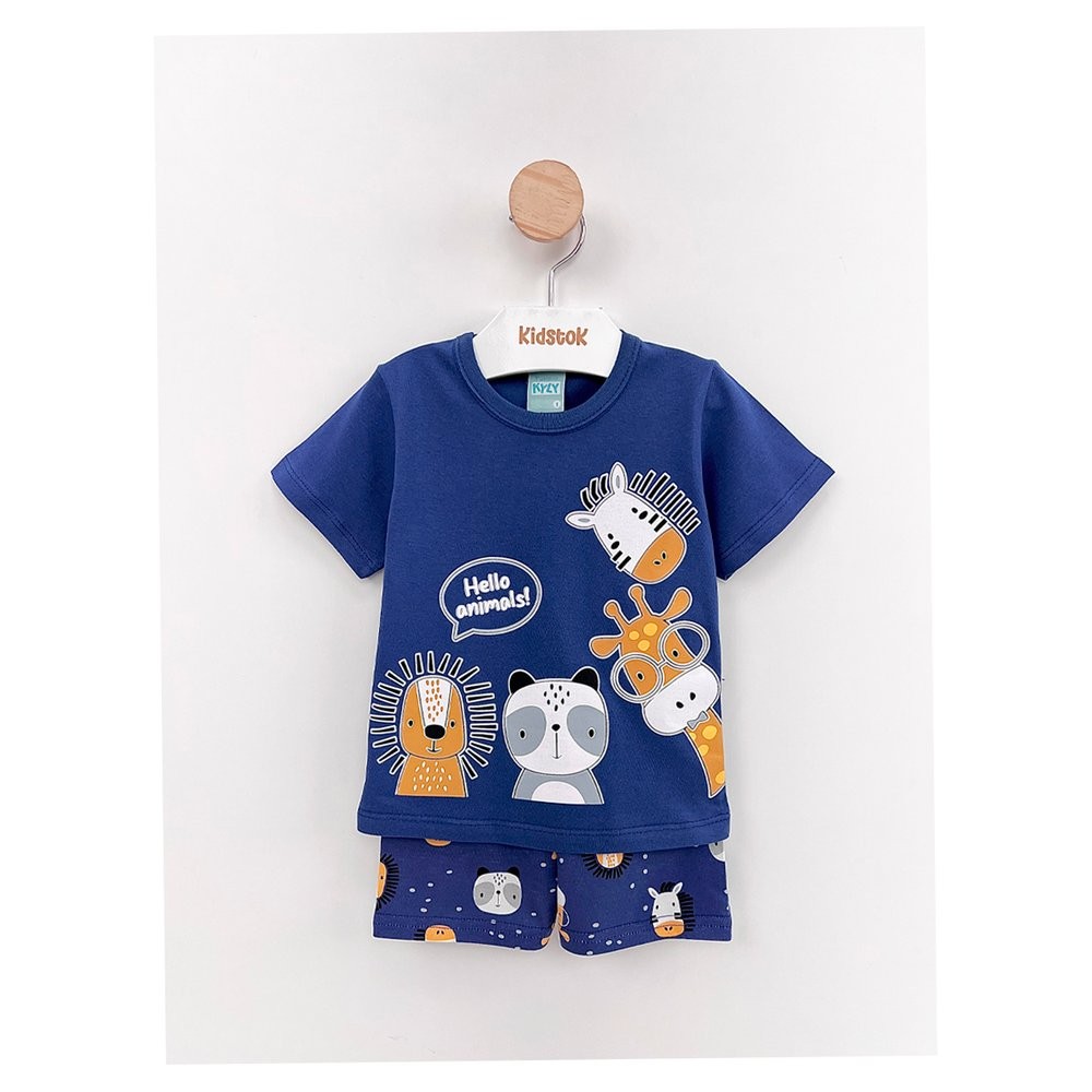 Pijama Menino Camiseta e Bermuda Animais Brilha no Escuro - Kyly