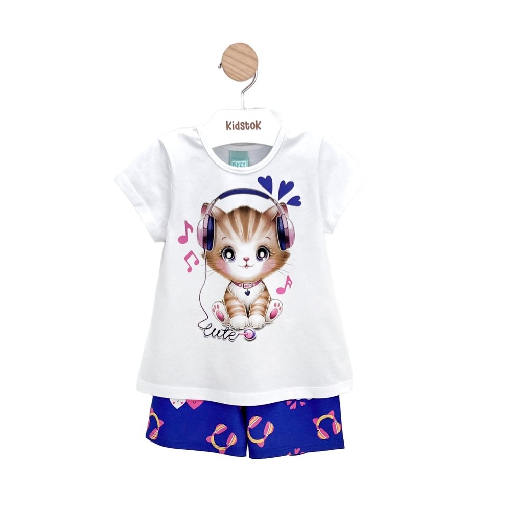 Pijama Menina Manga Curta Gatinho Fone - Kyly