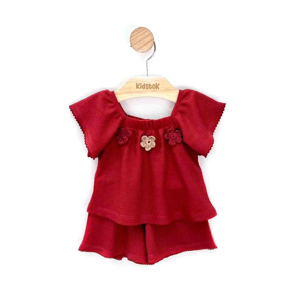 Conjunto Menina Blusa e Short Waffle Flores Bordadas - Kidstok