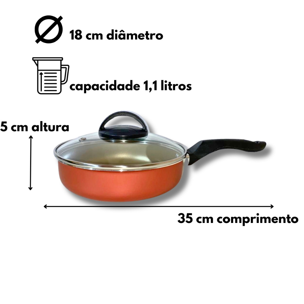 Frigideira Alta Funda 18 Cm Antiaderente C/ Tampa Vidro